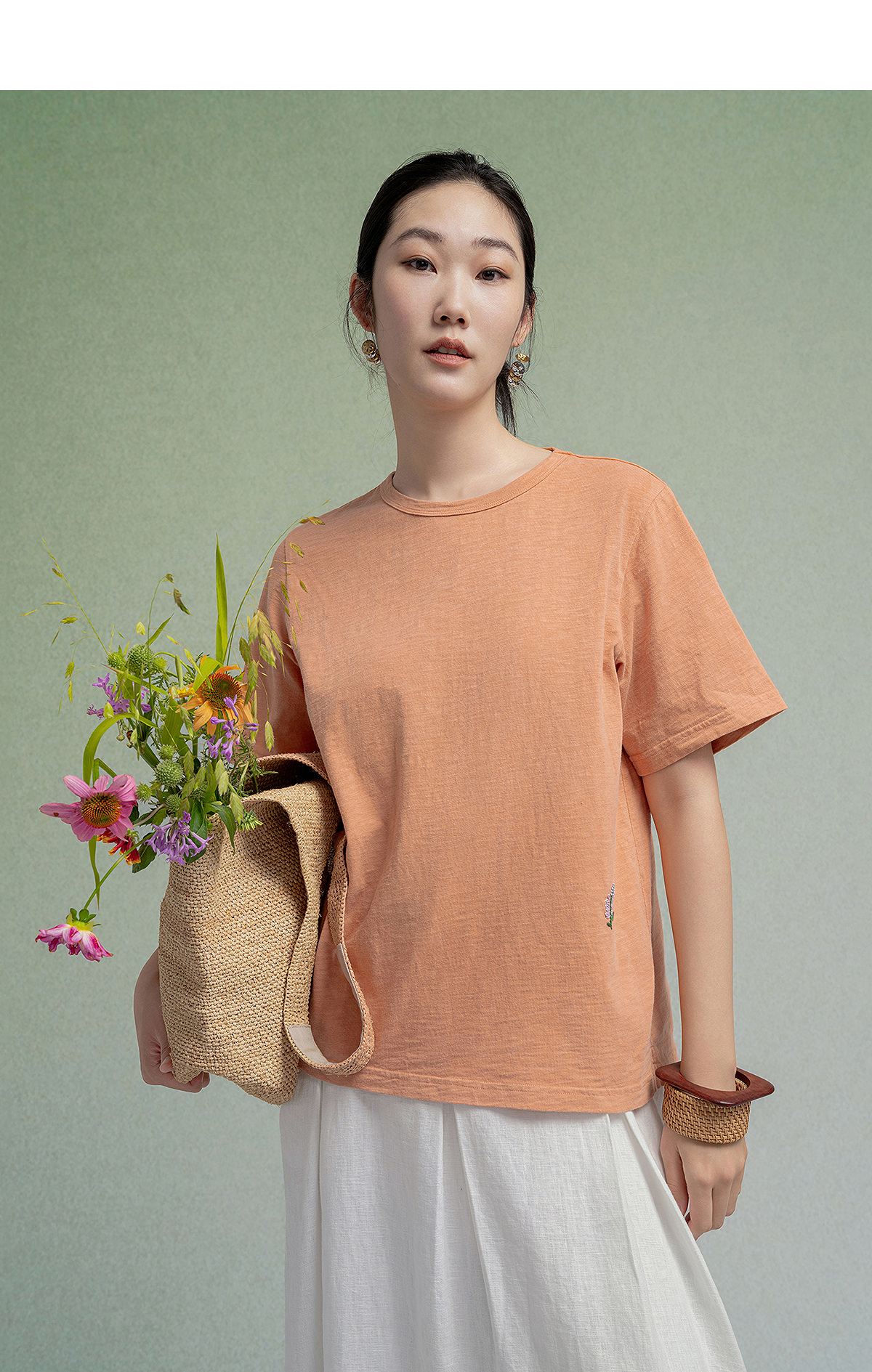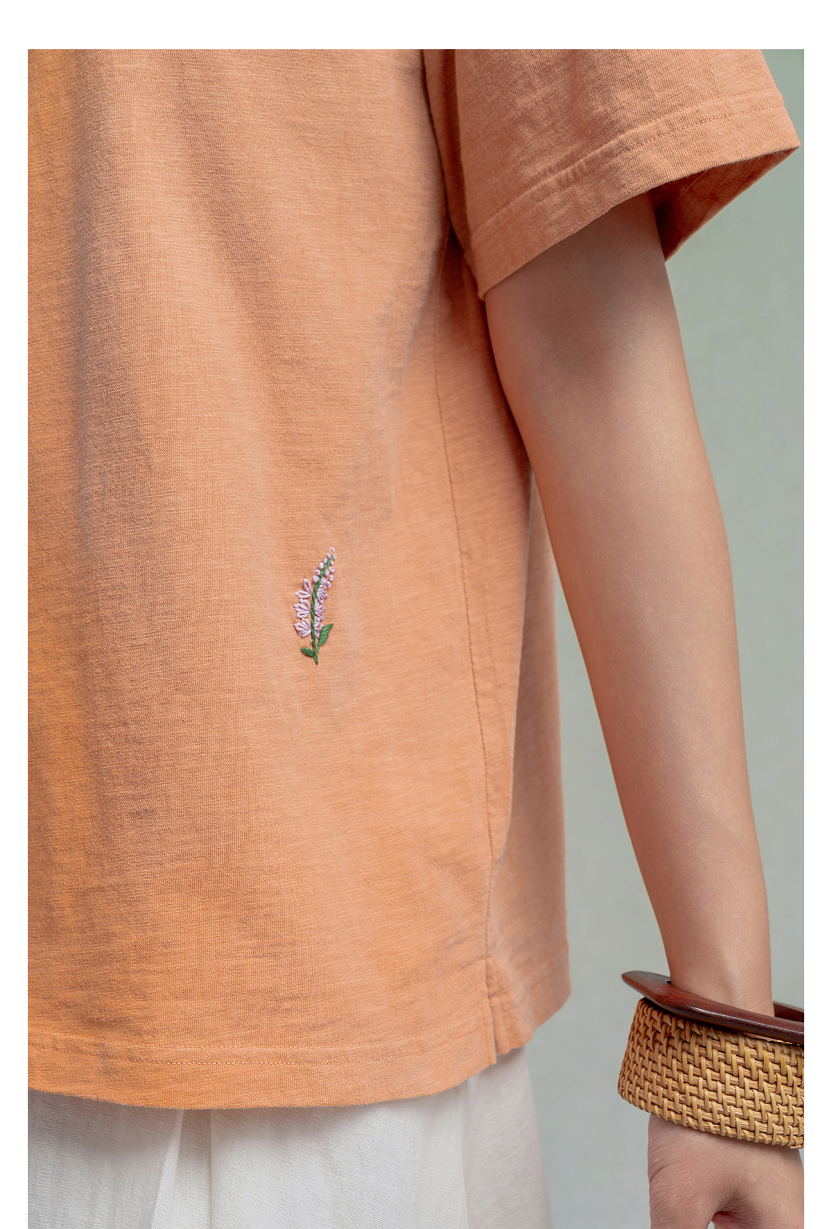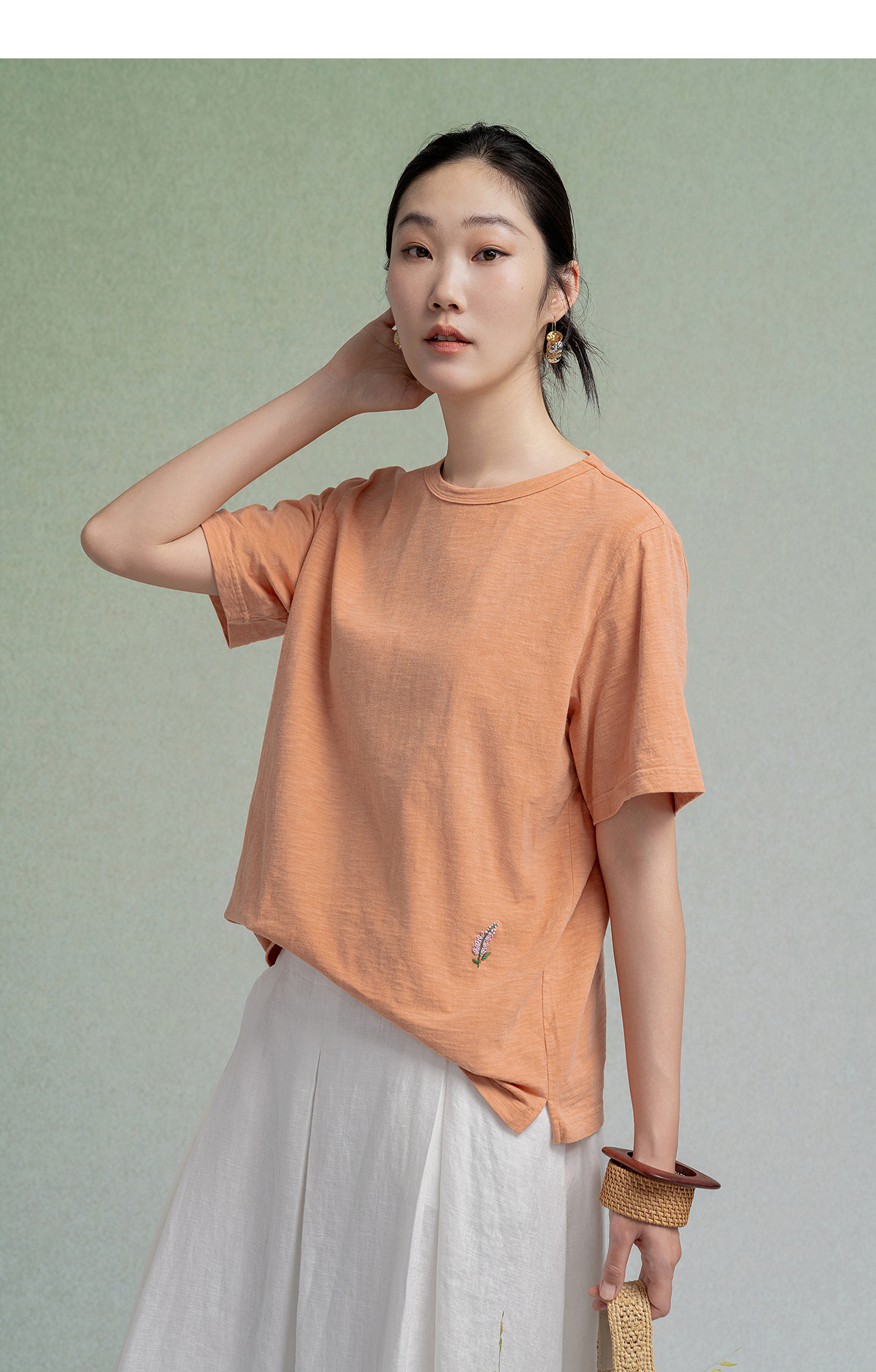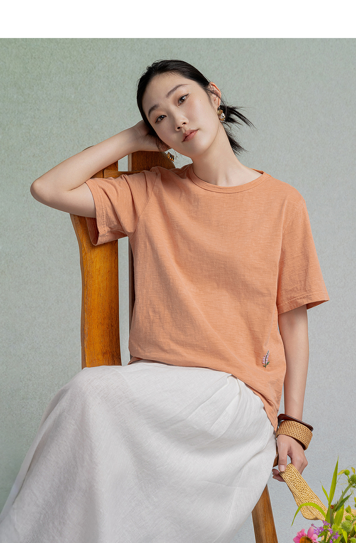 【林栖设计小店】植物染色|手工绣花优雅多色百搭宽松2026春新款纯棉T恤1961001