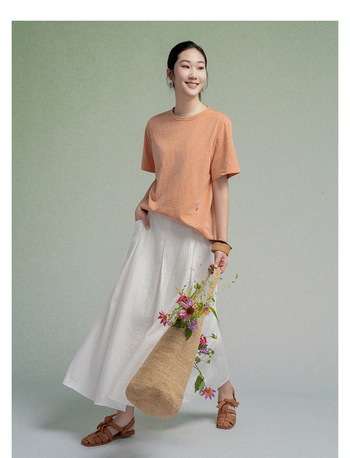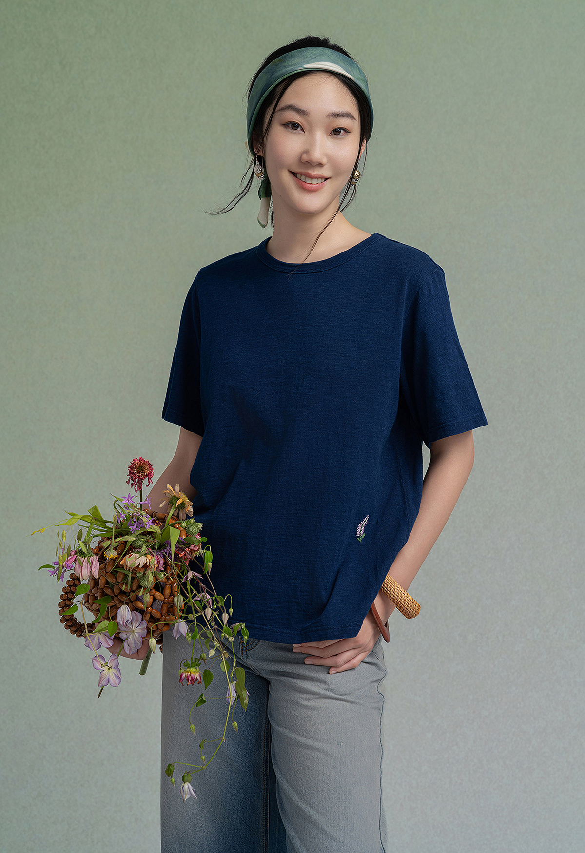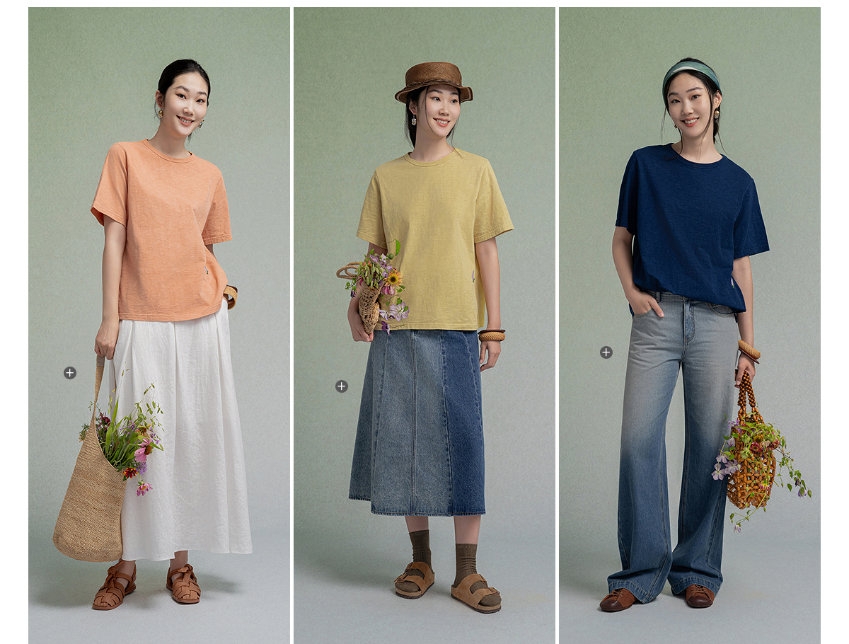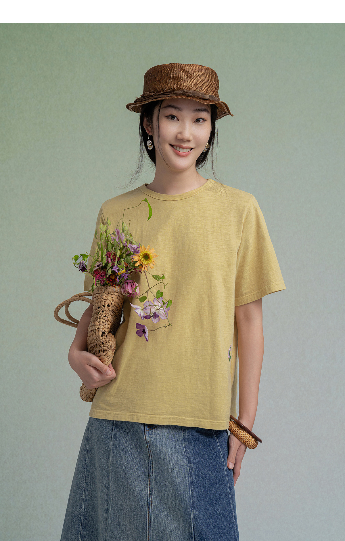 【林栖设计小店】植物染色|手工绣花优雅多色百搭宽松2026春新款纯棉T恤1961001