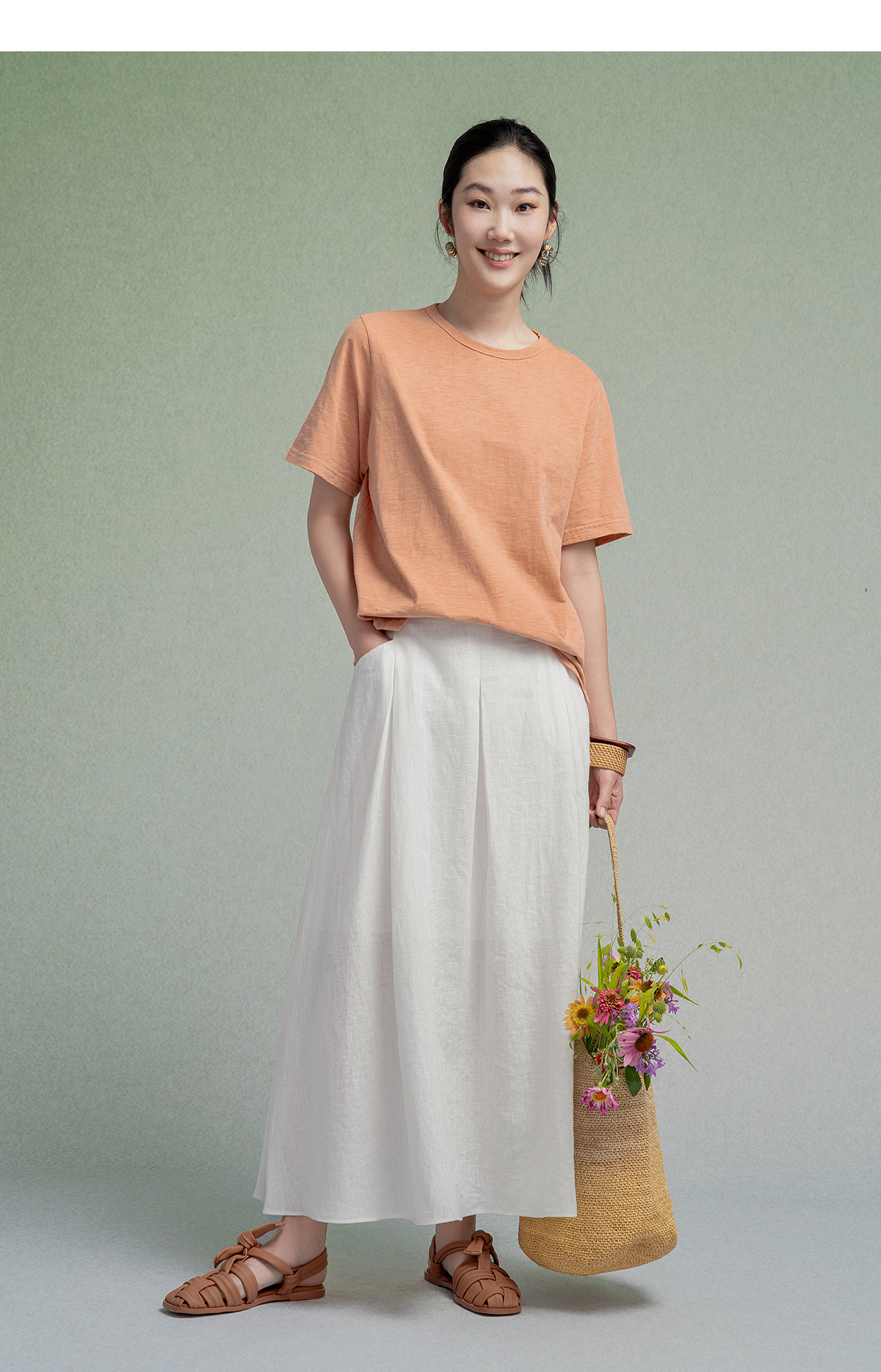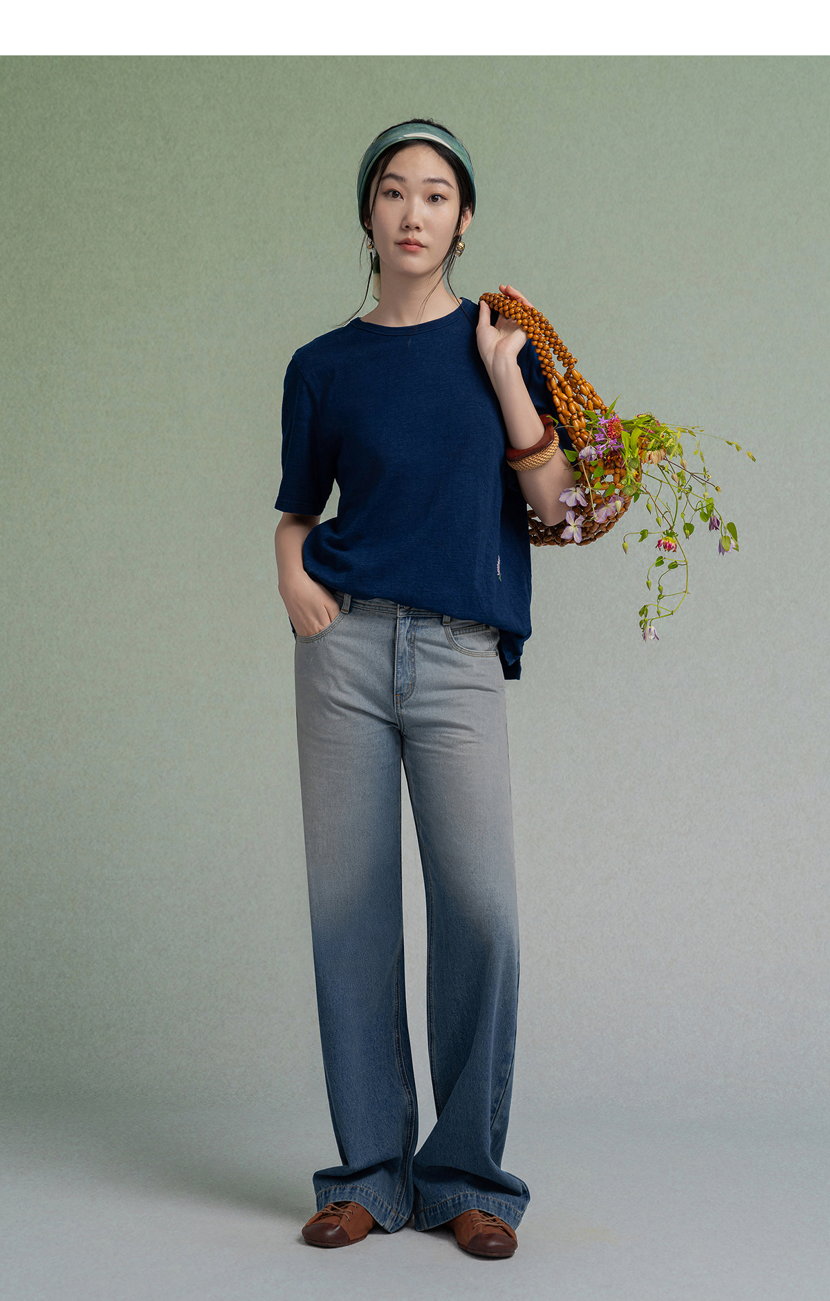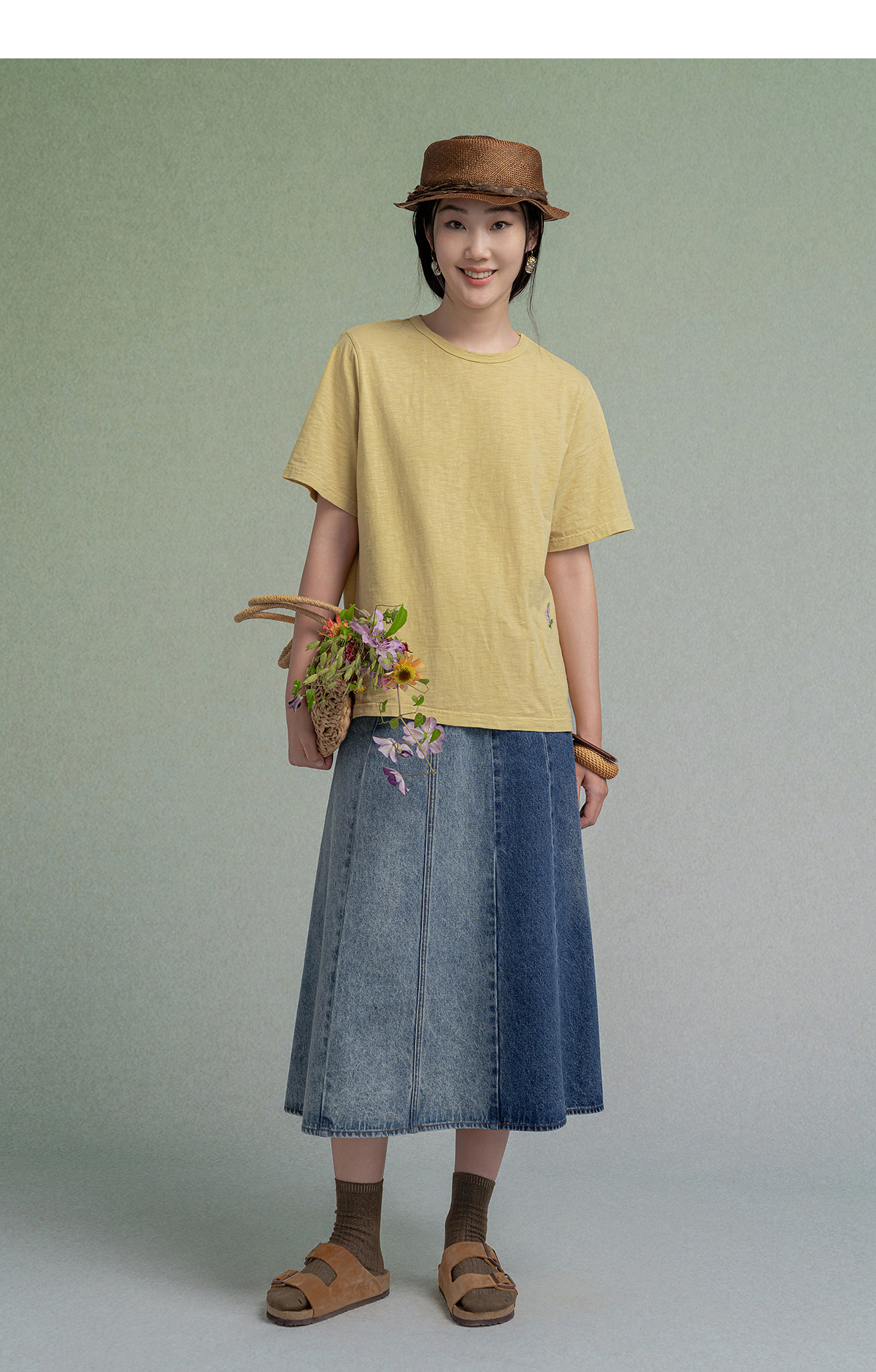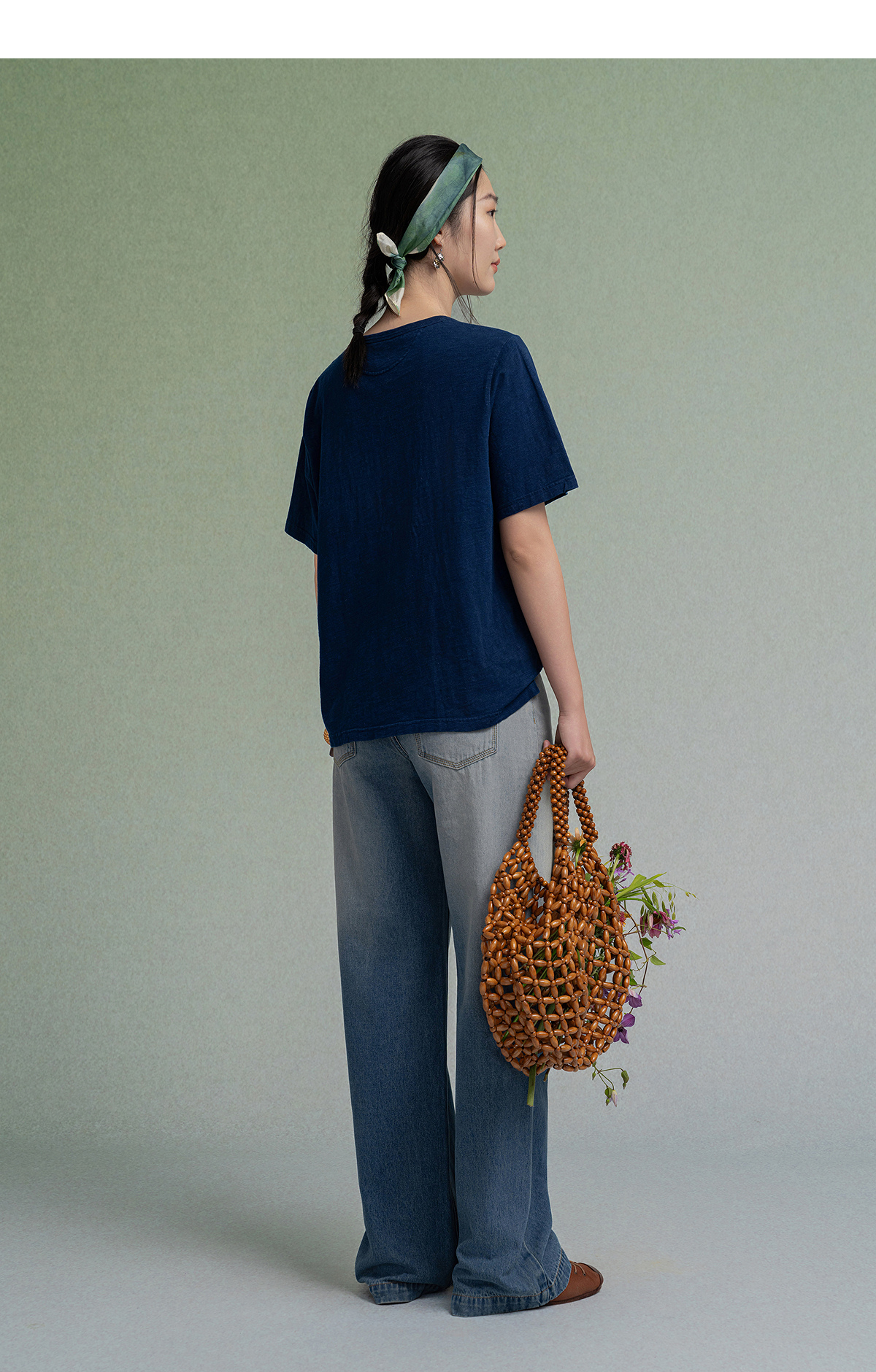 【林栖设计小店】植物染色|手工绣花优雅多色百搭宽松2026春新款纯棉T恤1961001