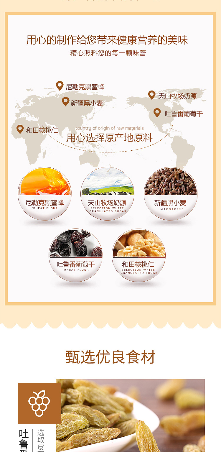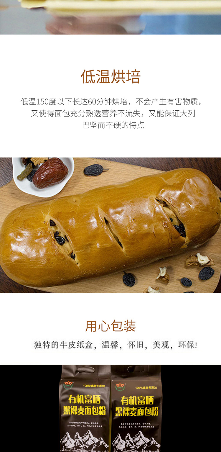 特点:麦约克黑麦列巴,采用的新疆天山雪水灌溉种植的有机富硒黑麦全麦粉制作,使用俄罗斯列巴传统工艺,经过24小时两次发酵,结合新疆特产的葡萄干,核桃仁,枸杞子,蔓越莓,纯手工制作,纯牛奶和有机黑麦面粉,不加任何添加剂,香精香料纯手工制作,拥有纯正的原麦香味,咀嚼更有嚼劲,是您早餐、外出旅行及送亲朋好友必备佳品。记得一定要切片食用风味更加.