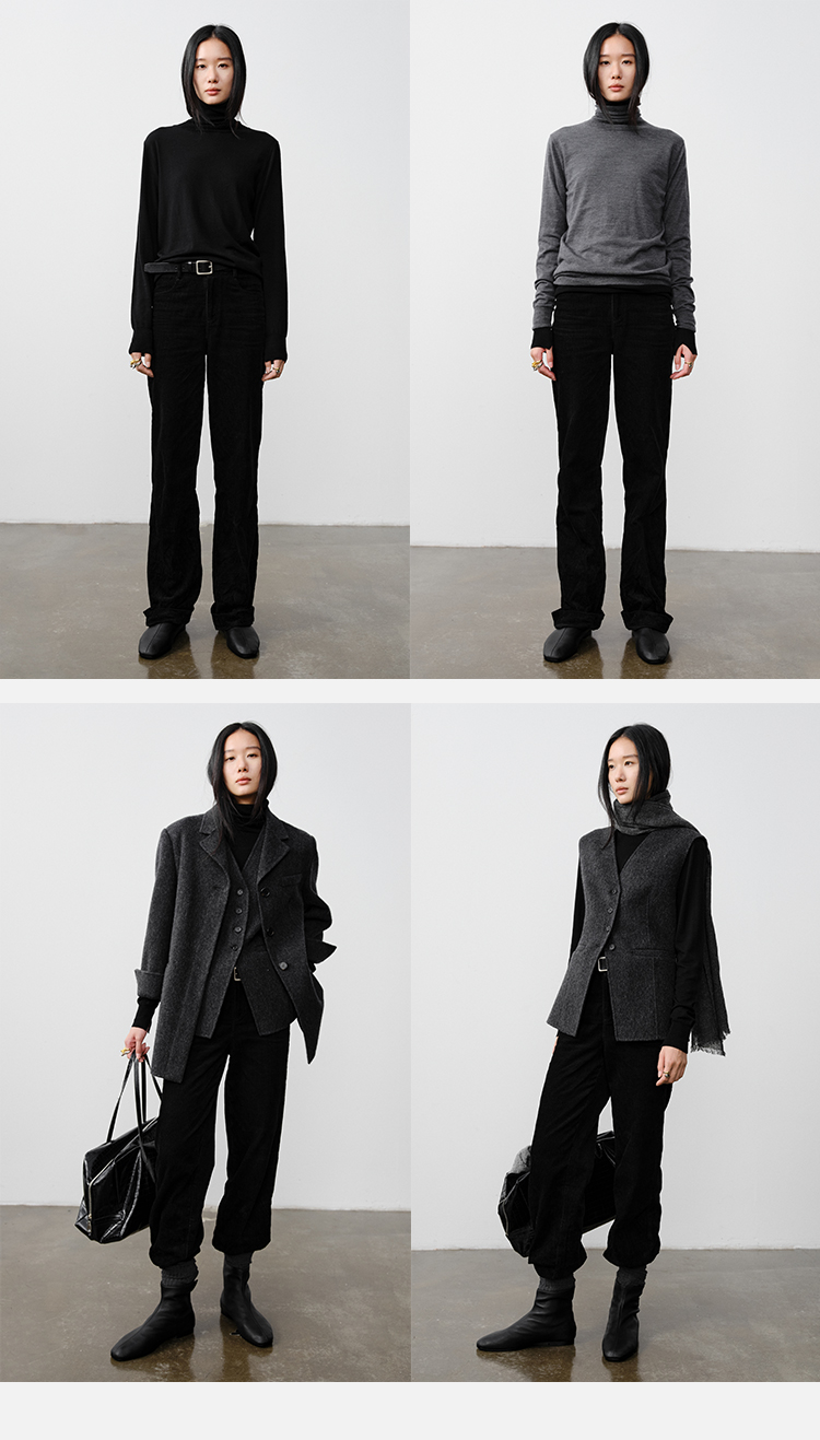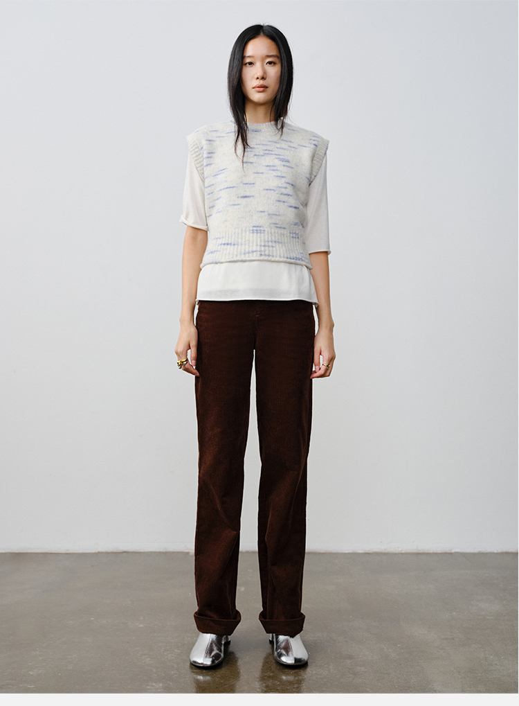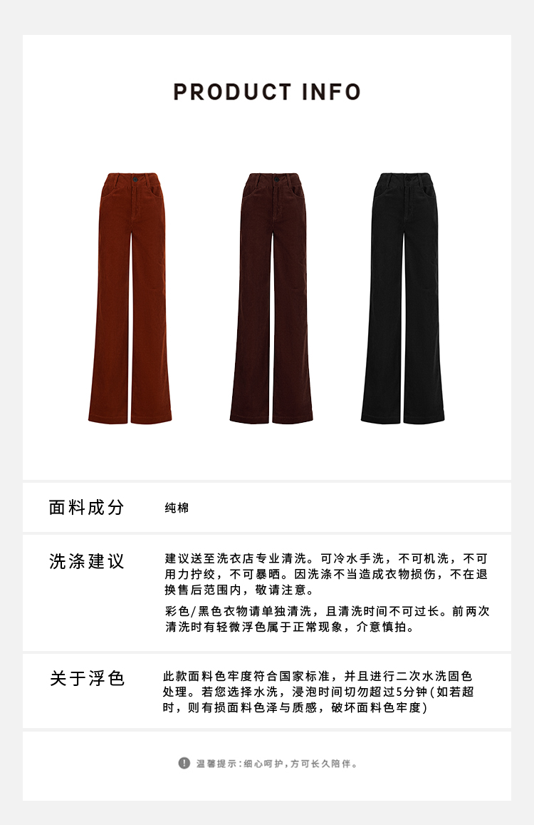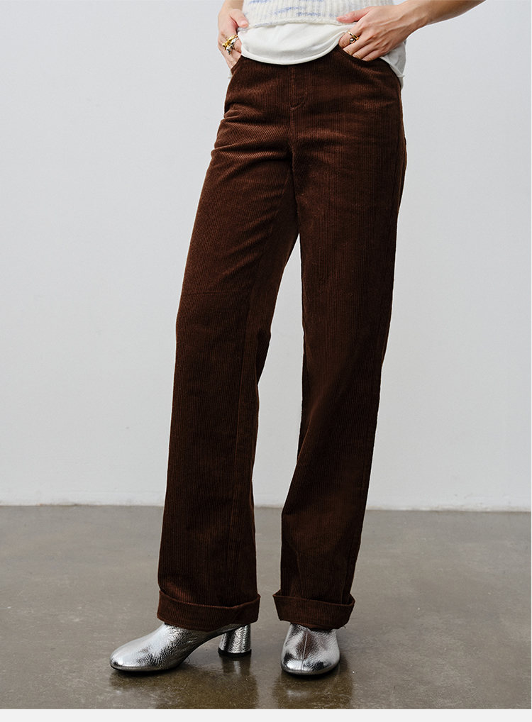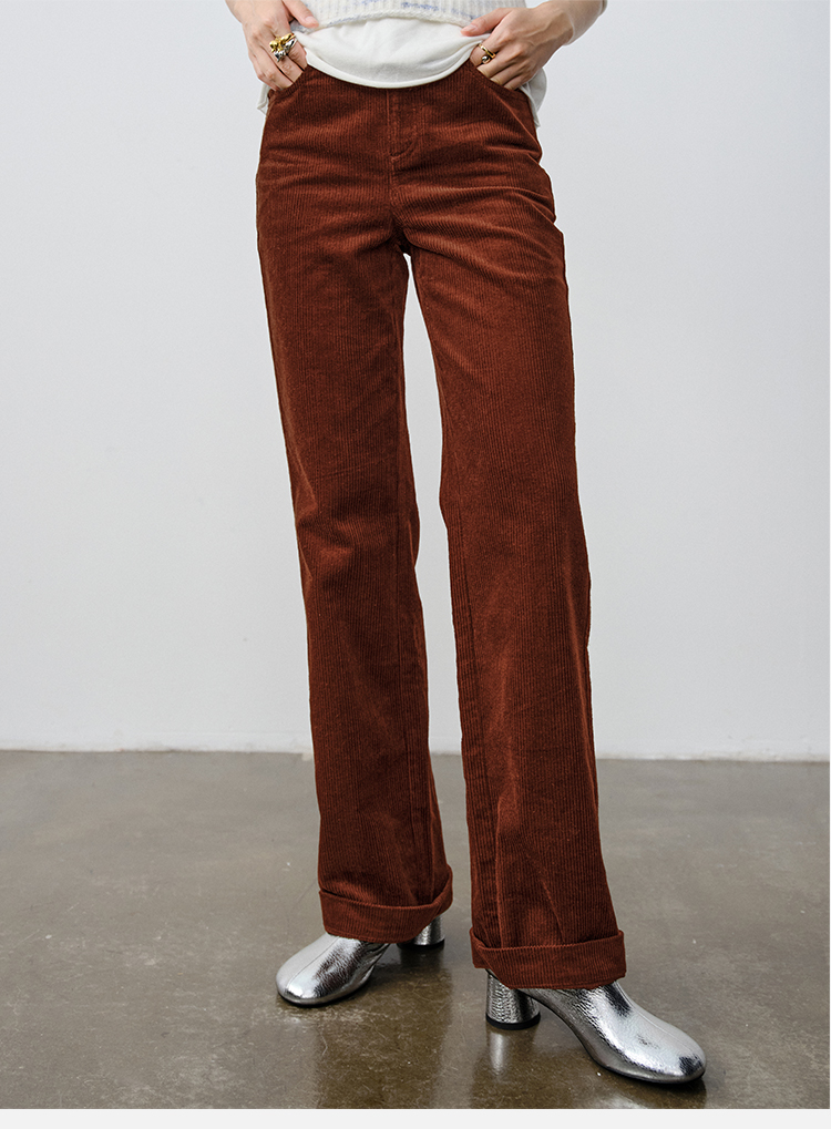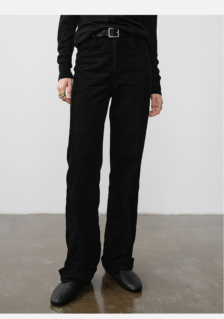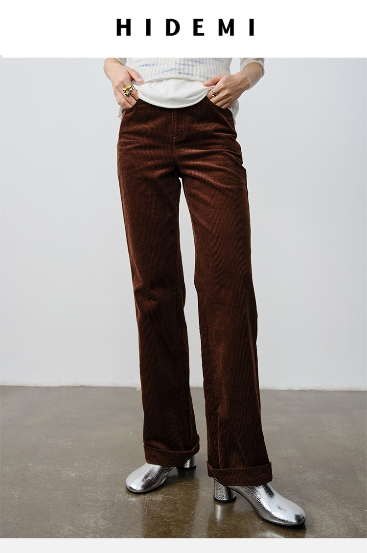 HIDEMI 复古水洗灯芯绒做旧感西裤直筒裤