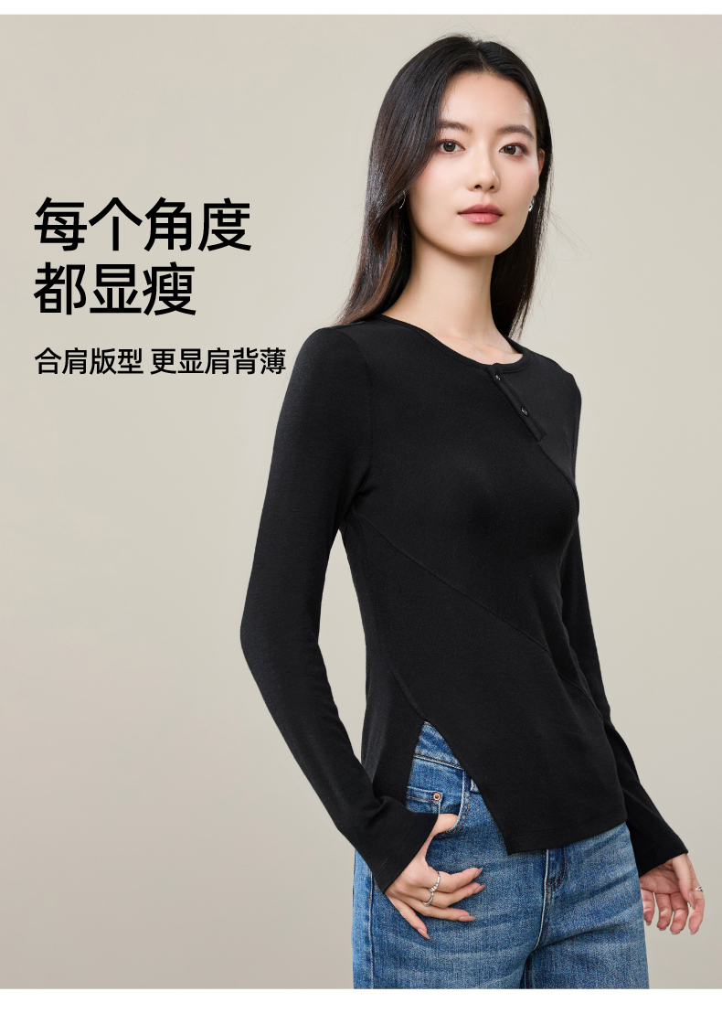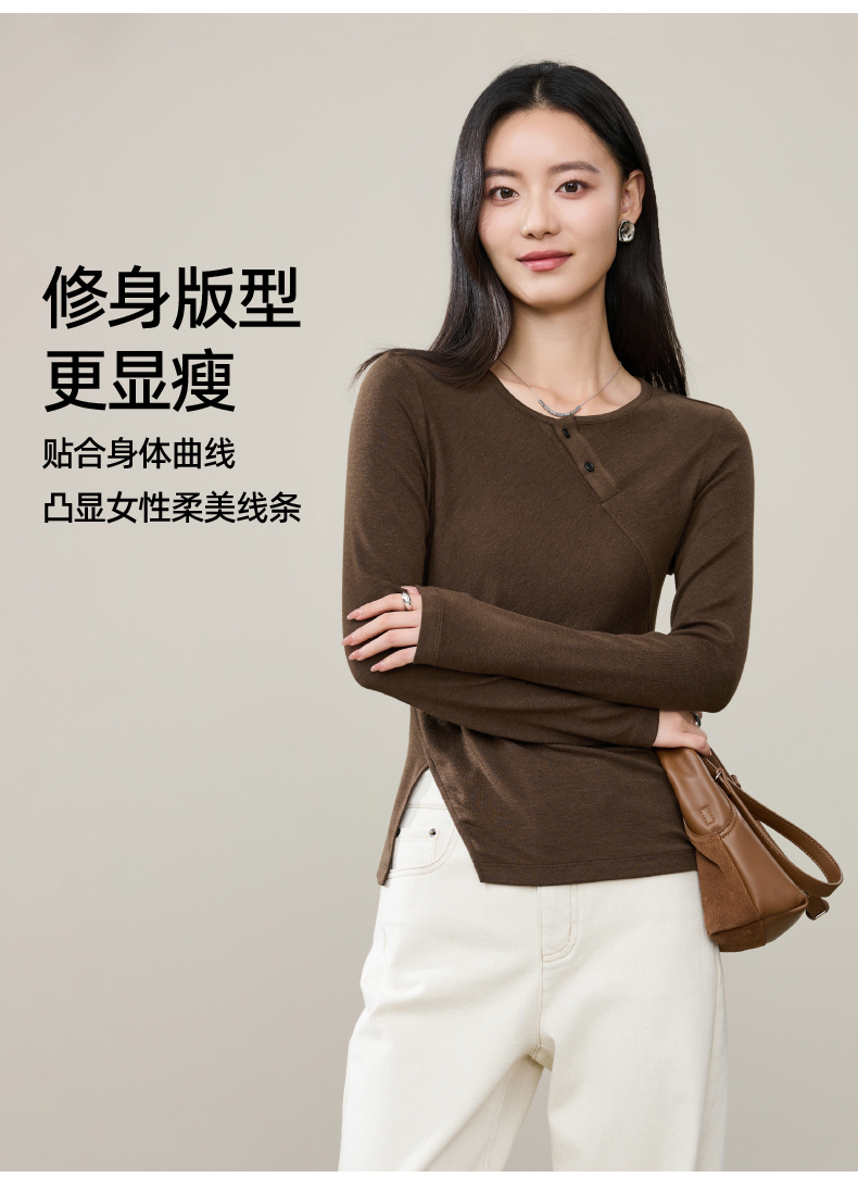 【亏本!羊毛打底衫】逸阳秋冬新品圆领设计感莱赛尔羊毛内搭修身显瘦上衣5263