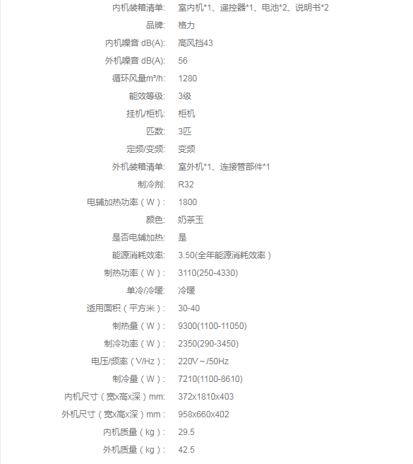 格力·凉之爽变频冷暖3匹3级能效柜机 KFR-72LW/(72509)FNhAb-B3(WIFI)(奶茶玉)