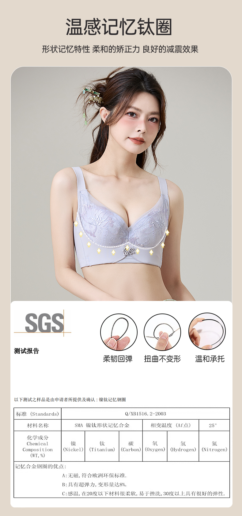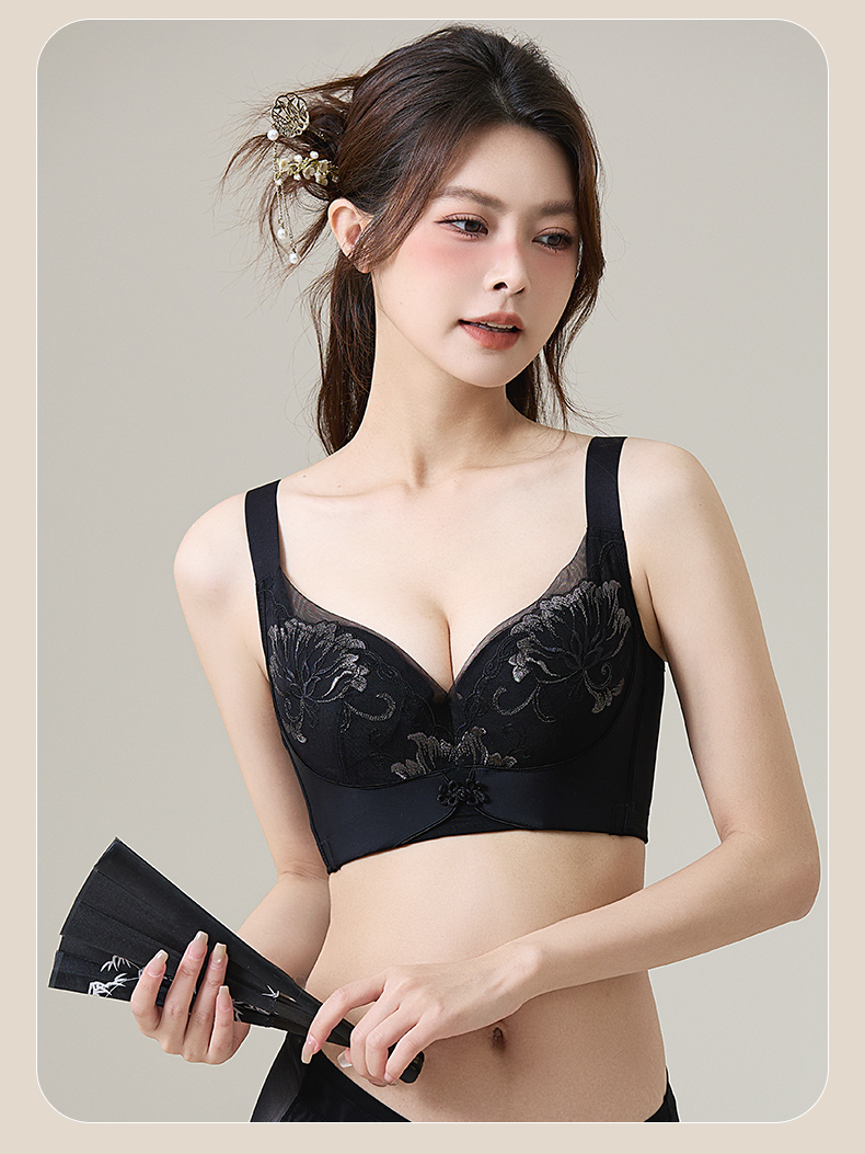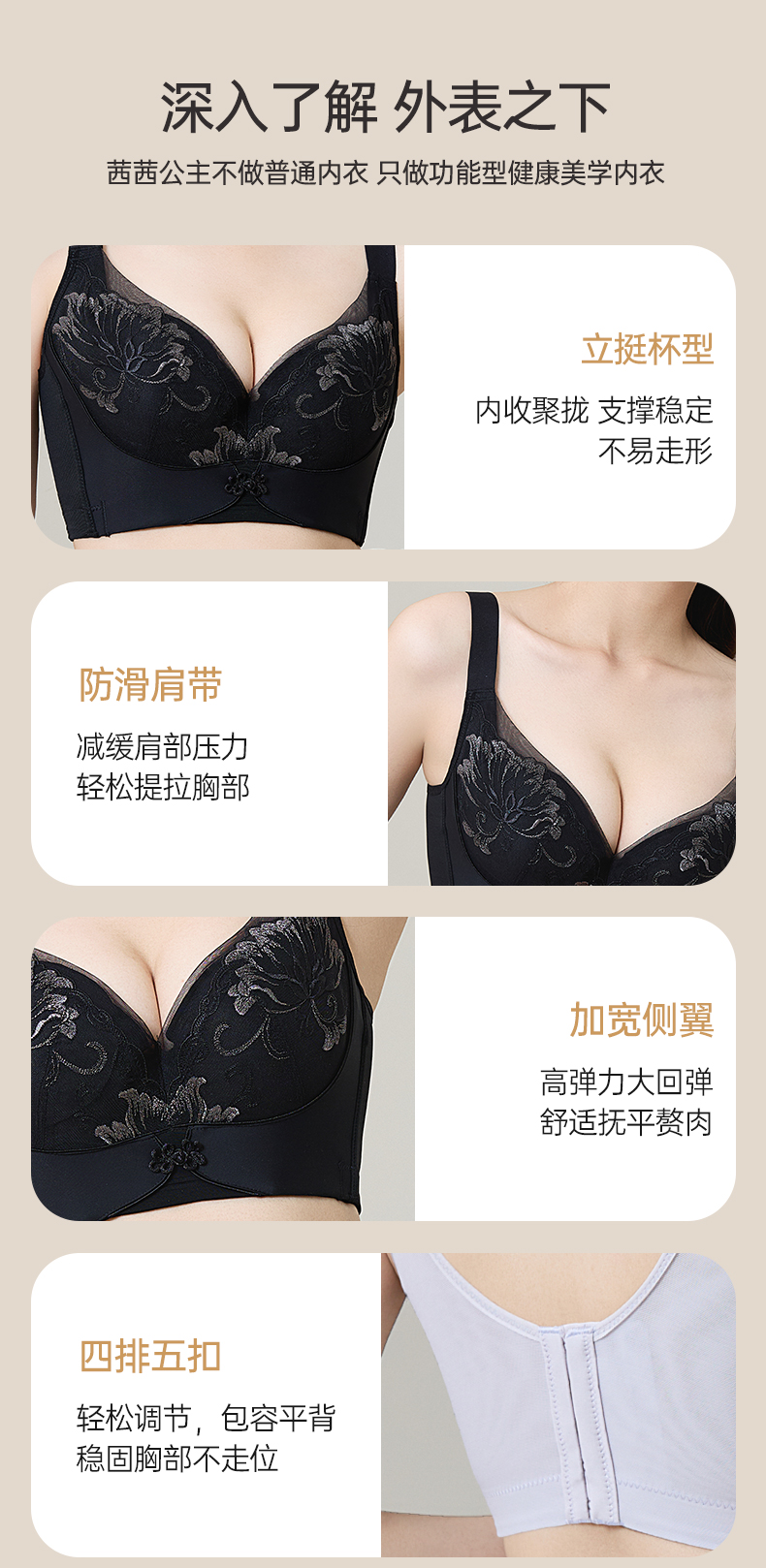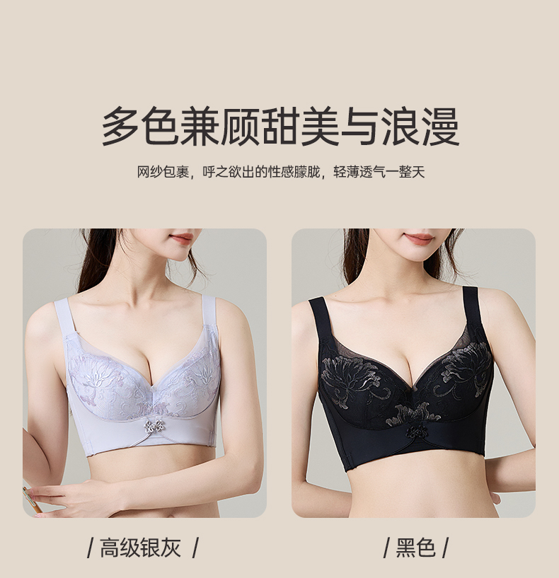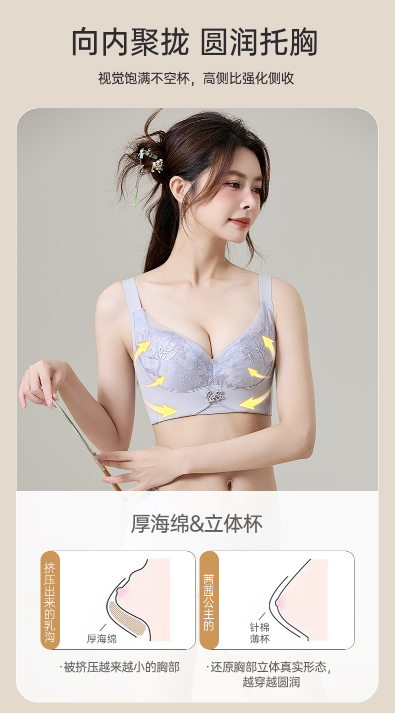 花溪调整型文胸 大胸显小全罩杯 薄款聚拢文胸 上托防下垂 侧收副乳 透气无钢圈内衣