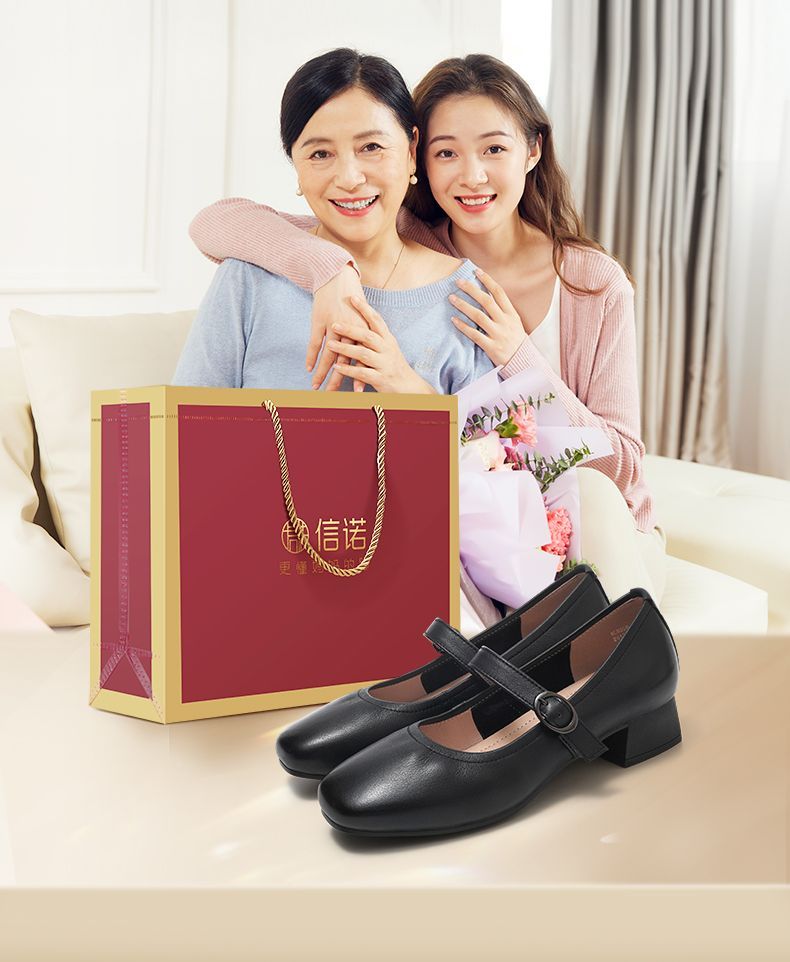 信诺真皮软底女鞋中老年妈妈鞋2025春秋新款舒适不累脚轻便单鞋子5C5009-17