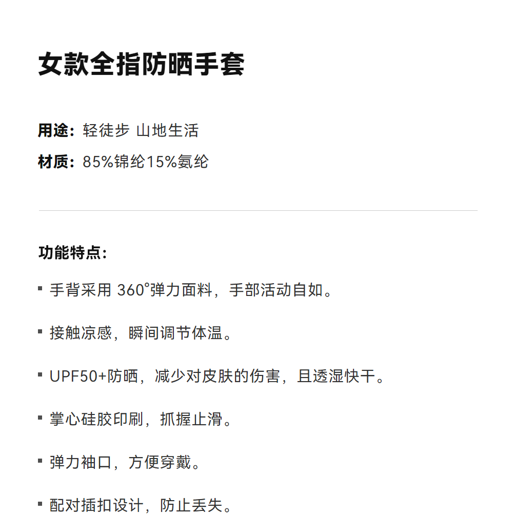 KAILAS凯乐石 女款全指防晒手套 KM2656201