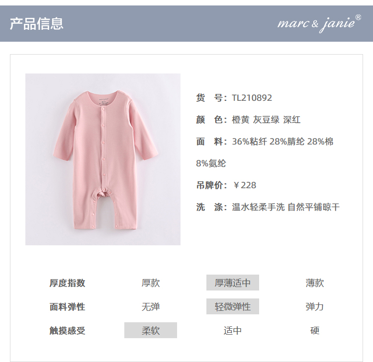 【德绒发热】马克珍妮婴儿秋冬装男女宝宝无骨保暖连体衣210892