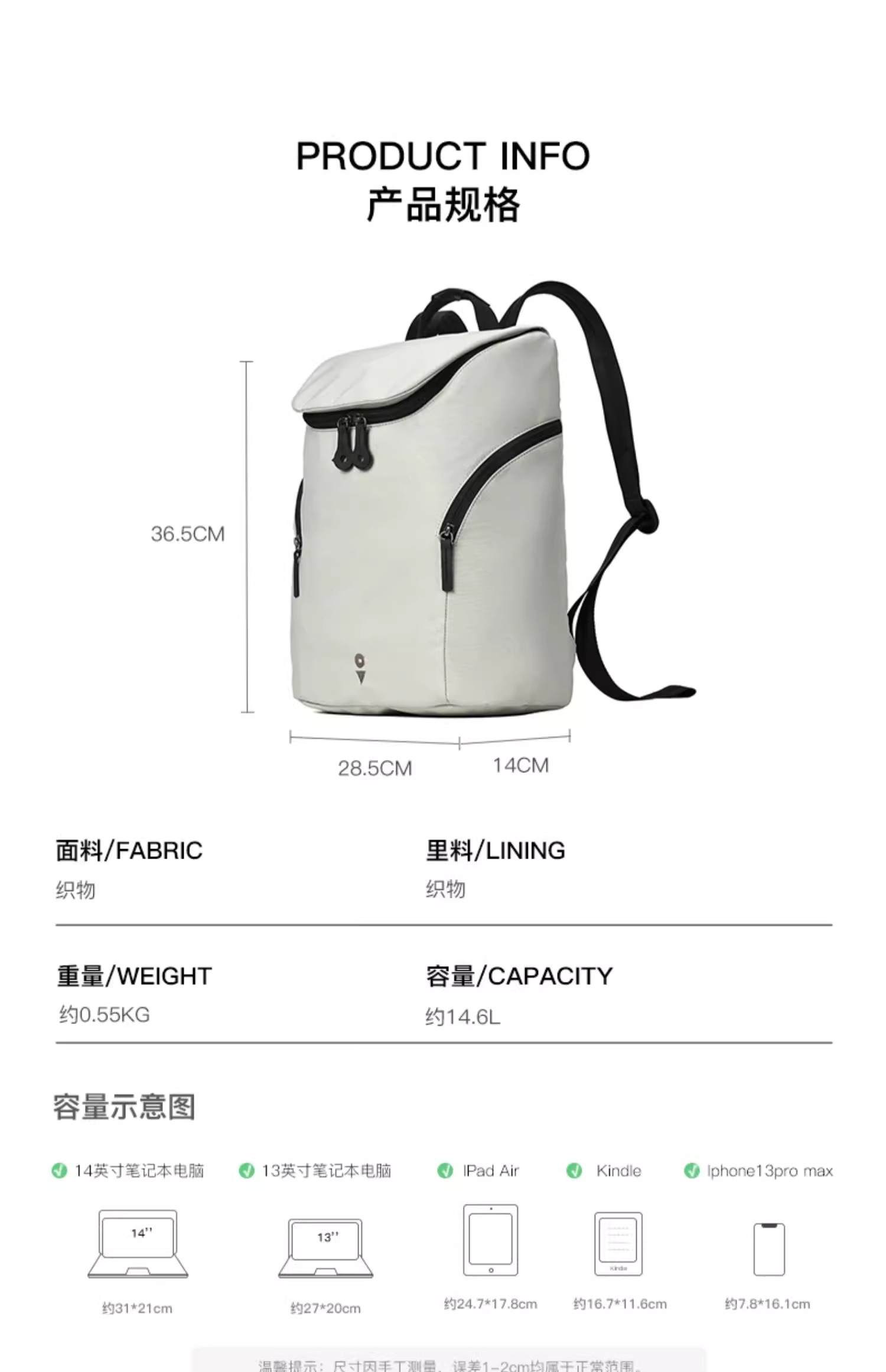 VENQUE范克新款旅行防水双肩包女旅游轻便大容量通勤书包电脑背包