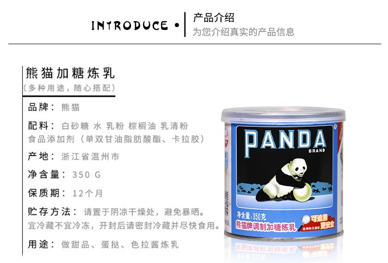 350g 罐装 熊猫牌炼乳 调制加糖炼乳 炼奶甜炼乳蛋挞蛋糕点心原料