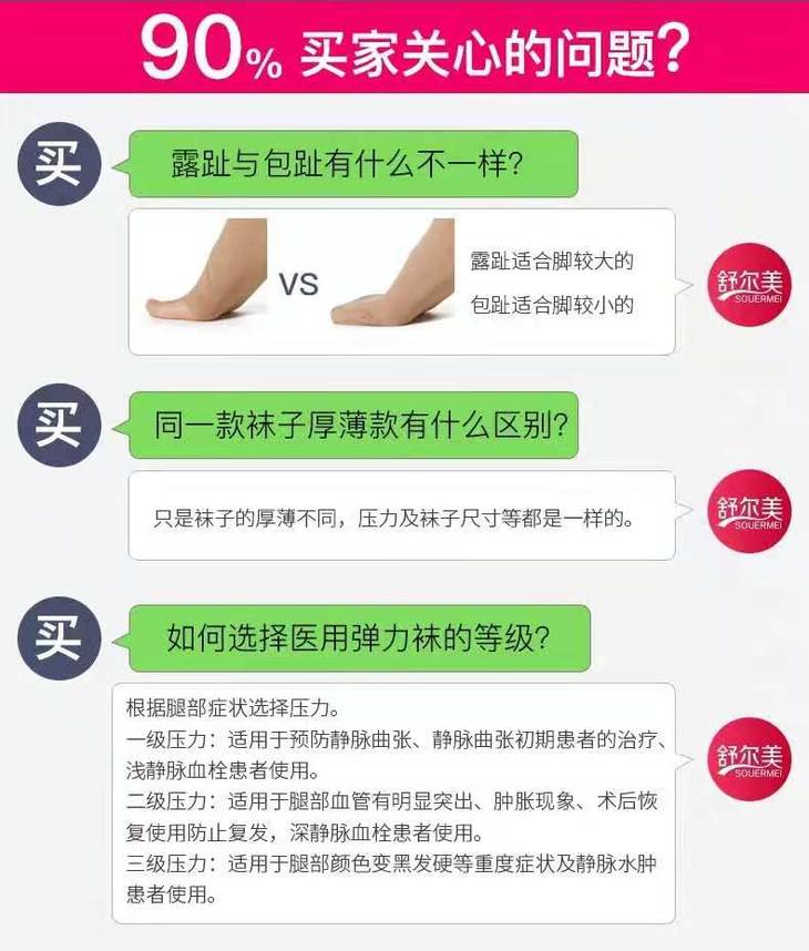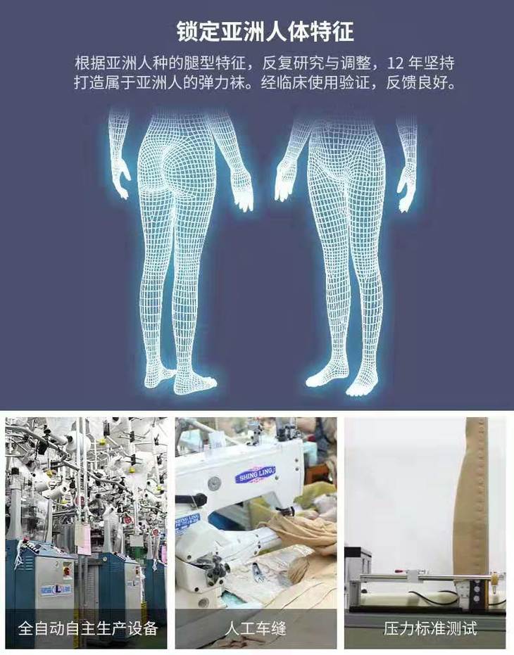 舒尔美医用一级压力中筒预防静脉曲张血栓袜弹力袜小腿袜男女通用预防型