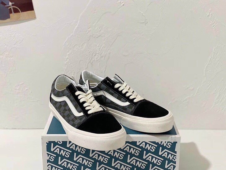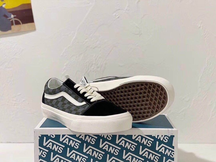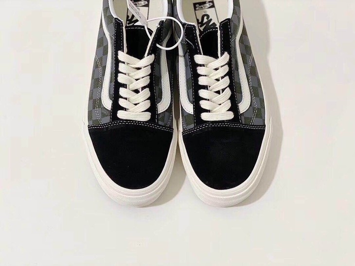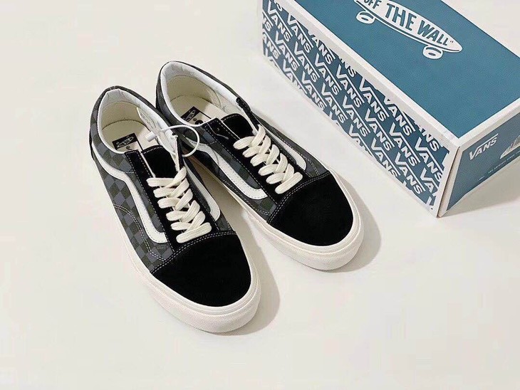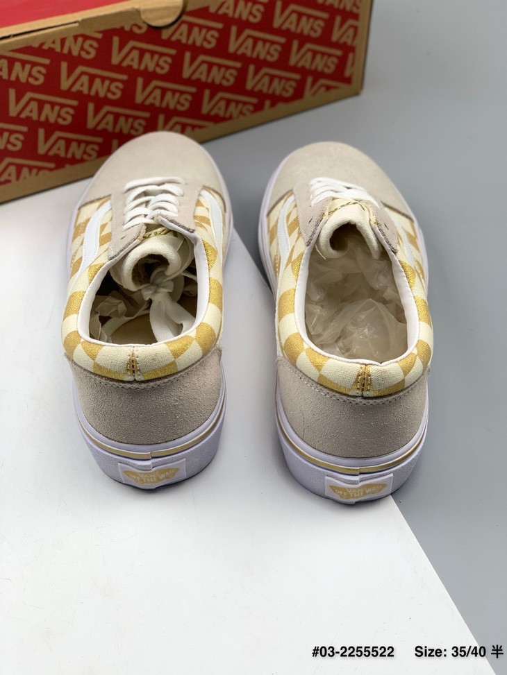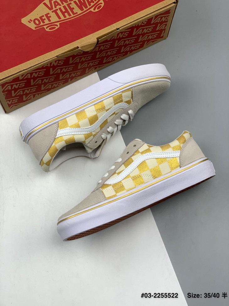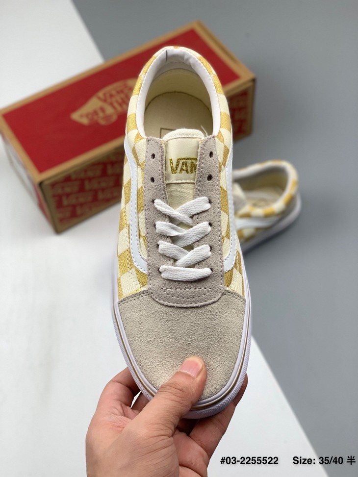 万斯Vans Old Skool 原盒真标 黄色 灰色 格子棋盘帆布磨砂皮拼接 低帮限定板鞋