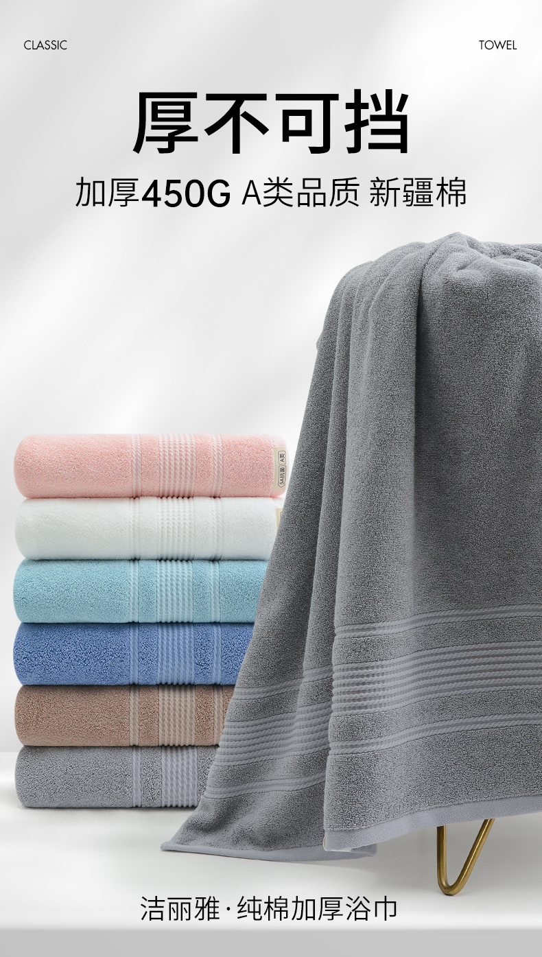 洁丽雅全棉浴巾不掉毛家用酒店款吸水加厚成人大号加大高档