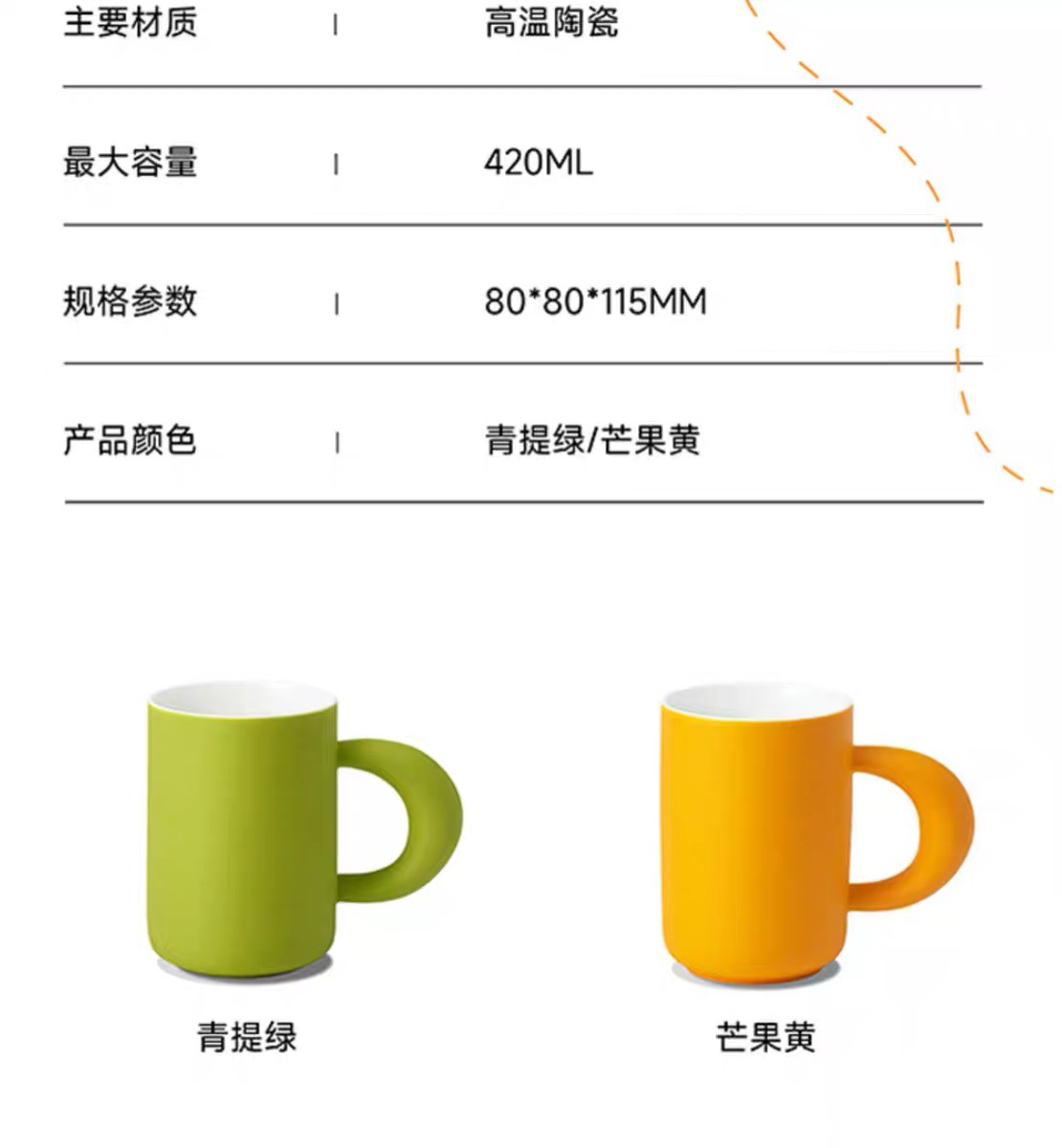 ◤果冻杯◢ 16开青提绿 芒果色高级感水杯咖啡杯马克杯陶瓷杯子