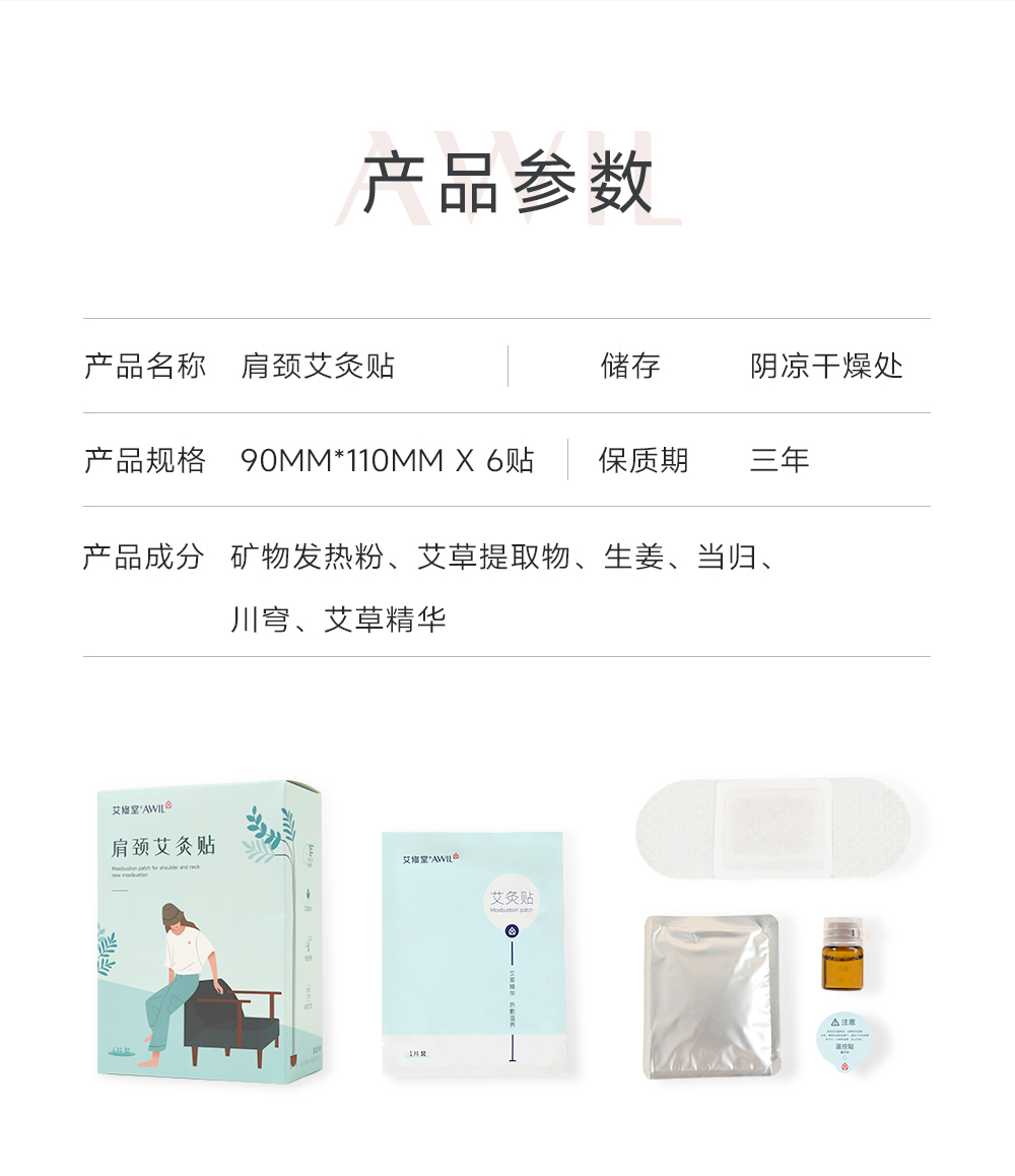 艾修堂肩颈艾灸贴(6片艾灸贴+6瓶艾草精油/盒)