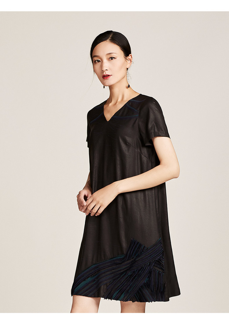 TANGY Collection天意弹力莨海波纹贴条连衣裙