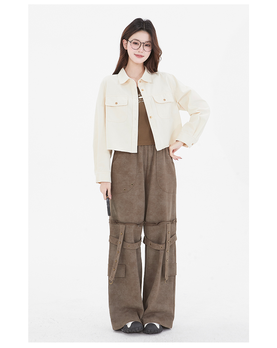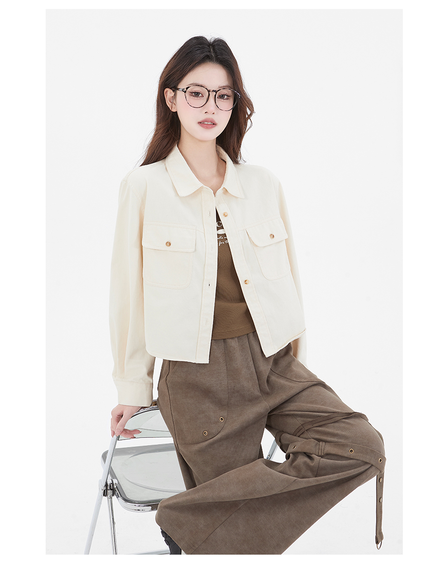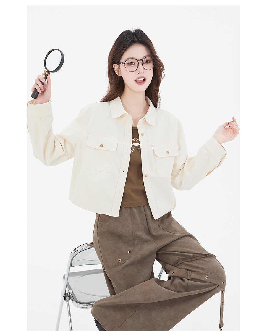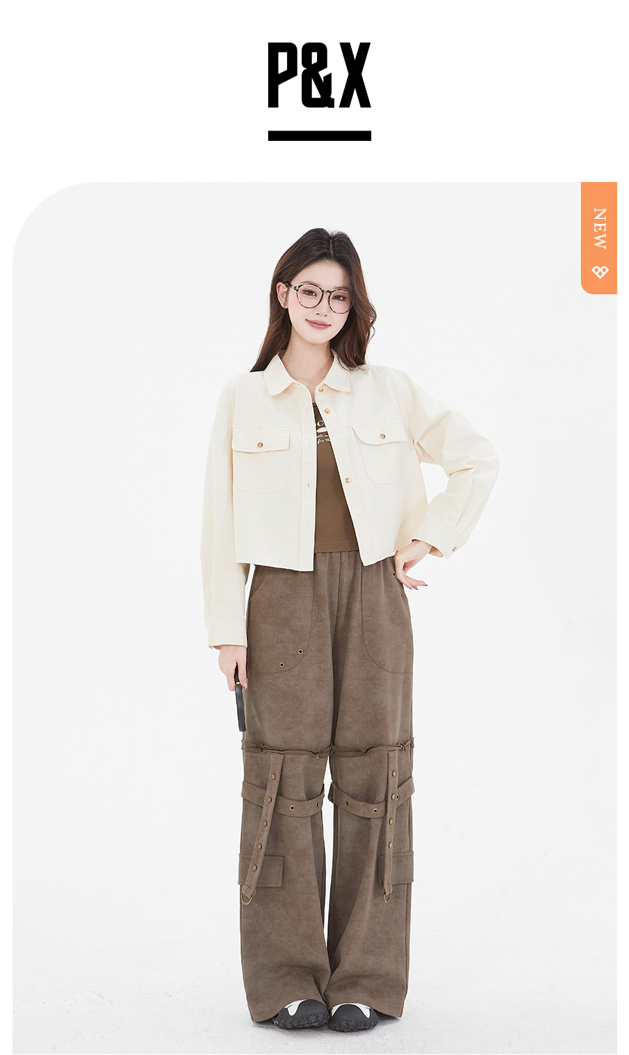 P&X设计师女装 新款POLO领纯色休闲短外套两件套825115110 杏/咖