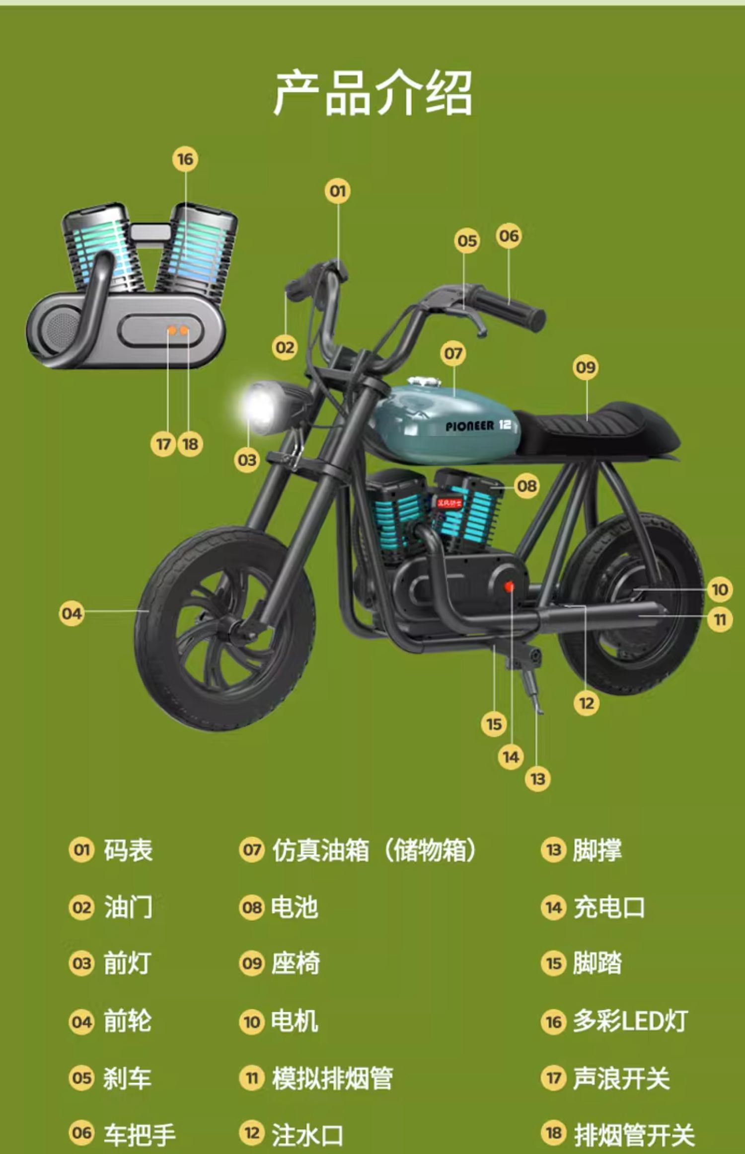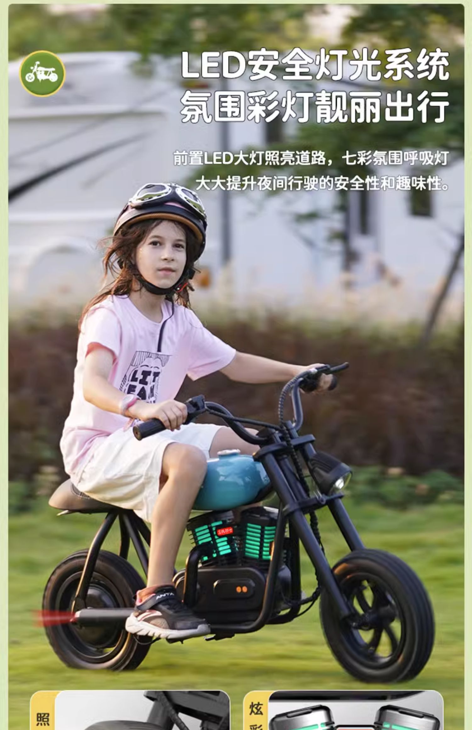 暴风骑士儿童电动车摩托车两轮越野车可坐大人 男女孩玩具车6-12岁