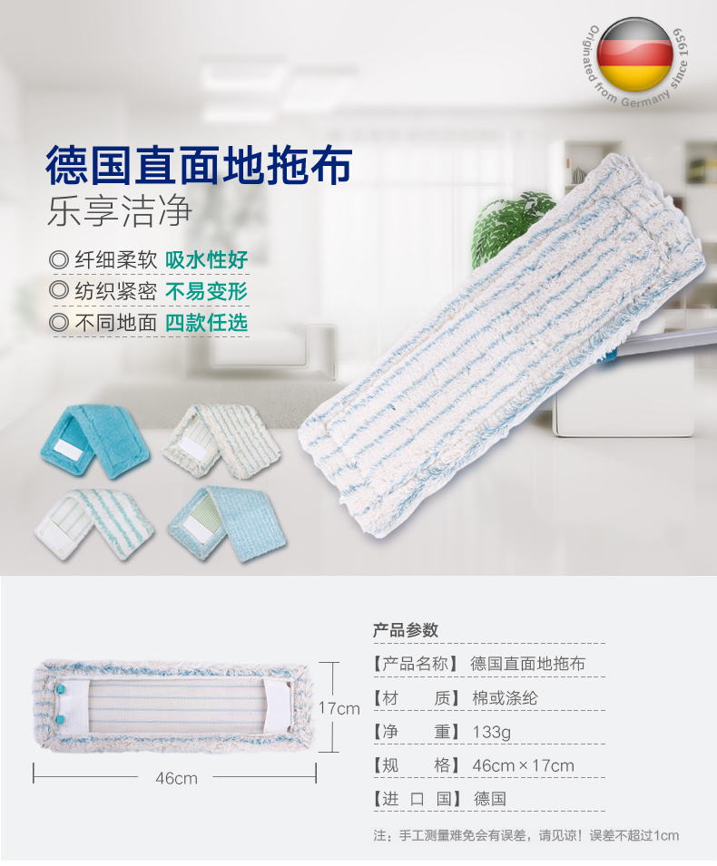 利快德国进口地板瓷砖拖把替换布干湿两用55020地拖布