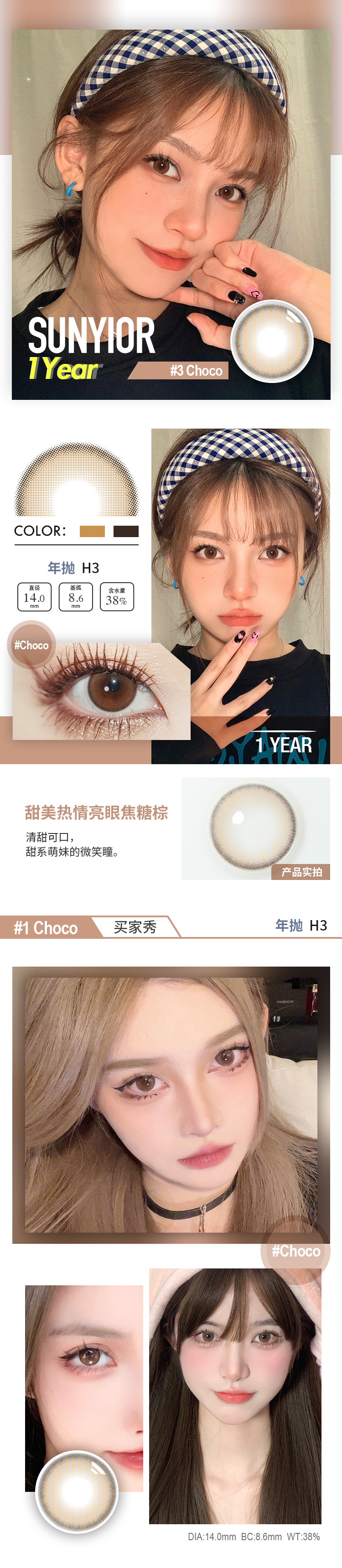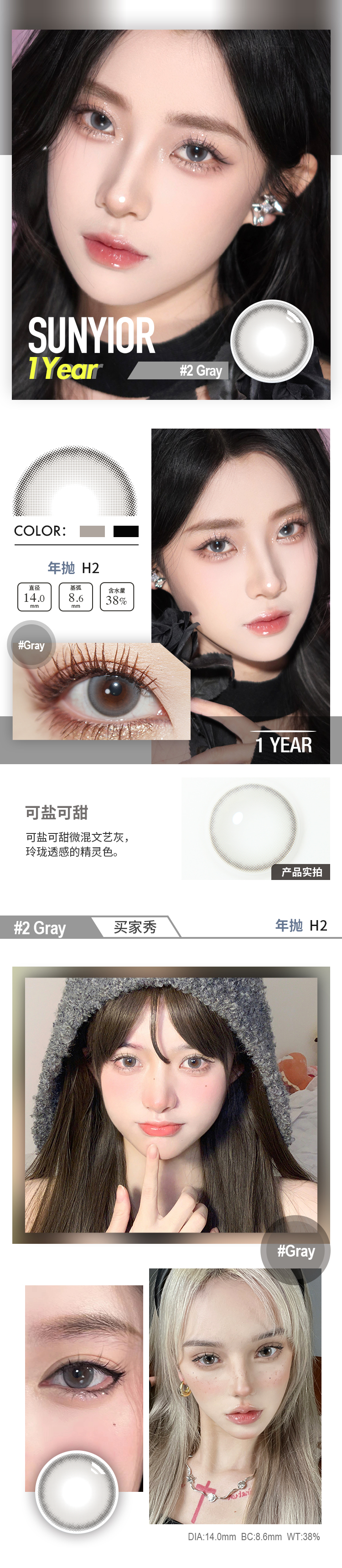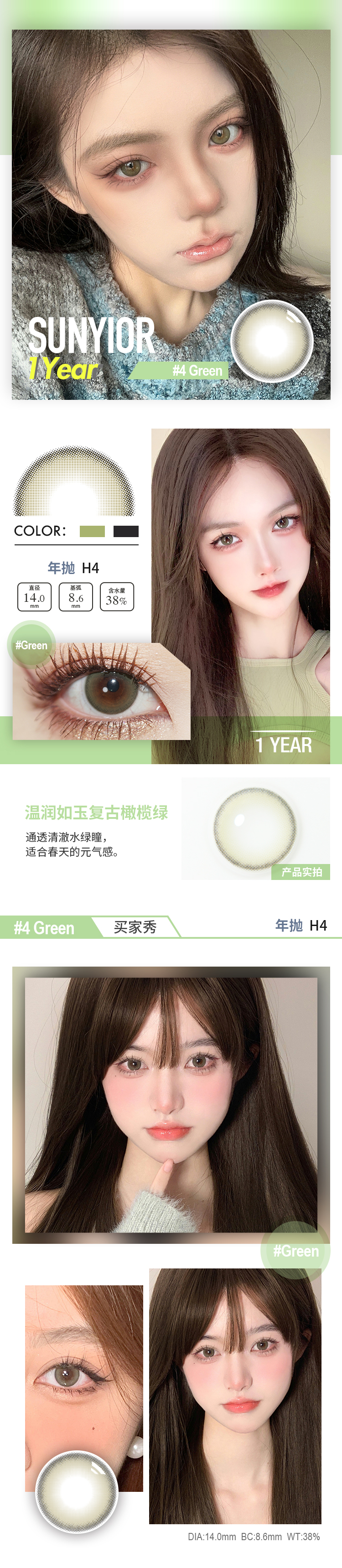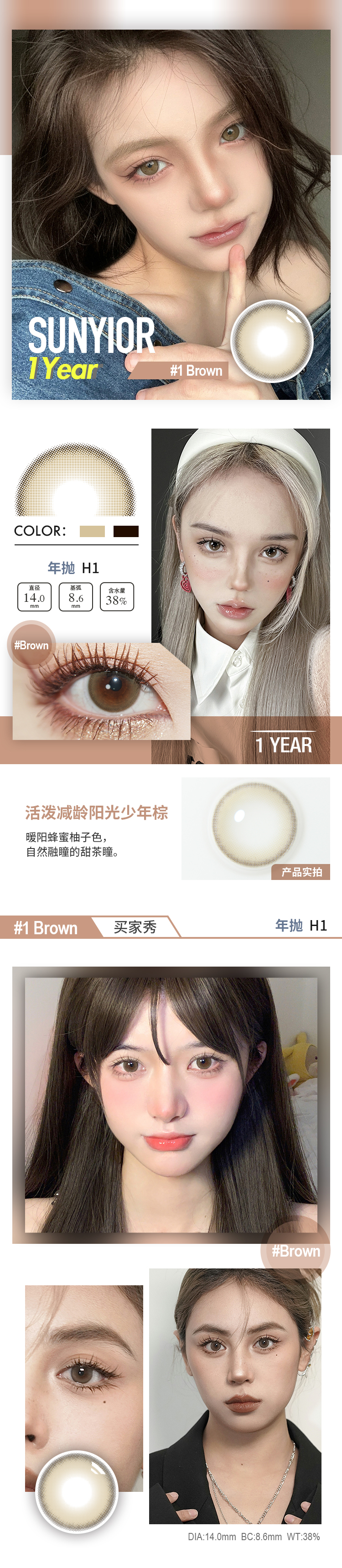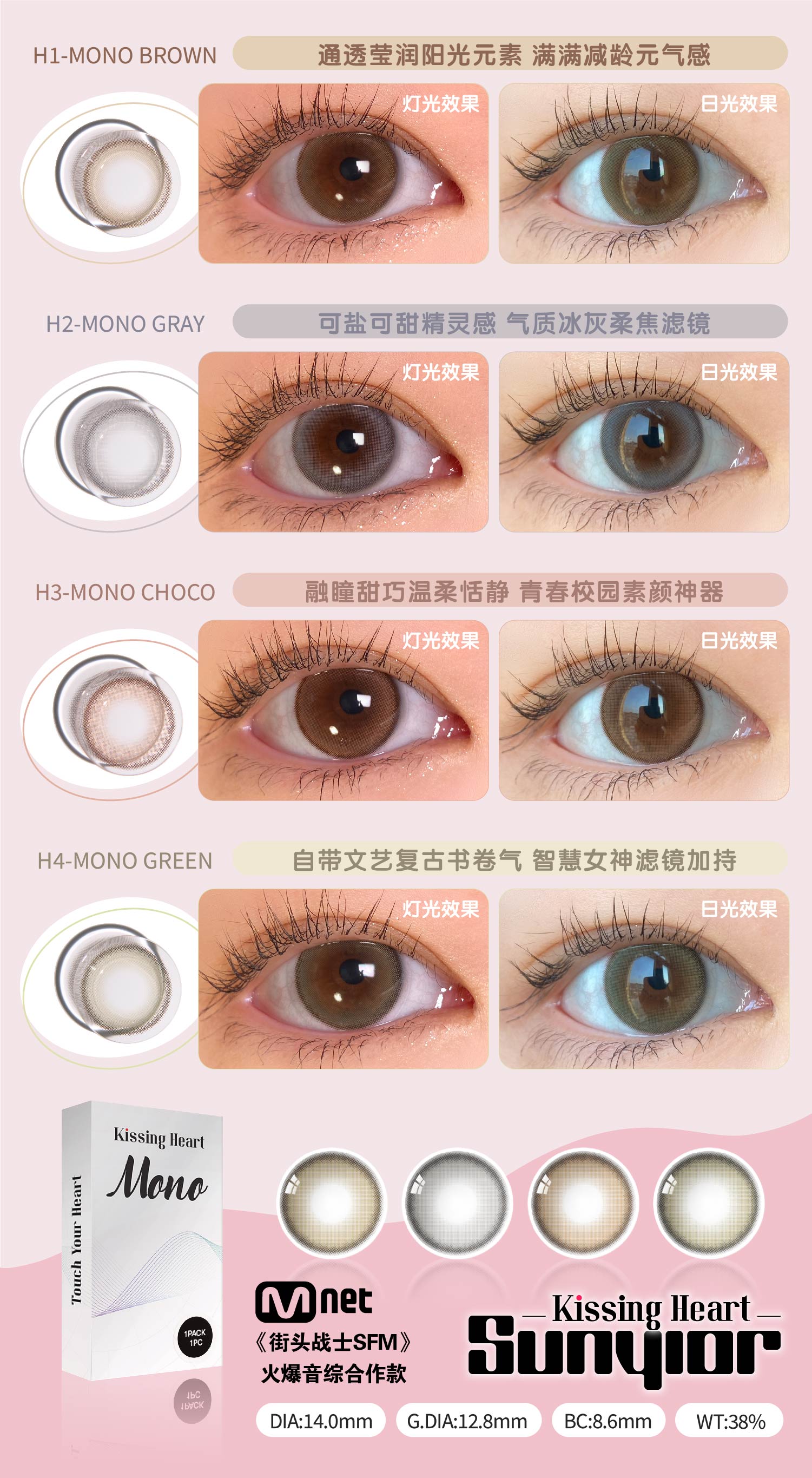 秀儿 年抛 MONO棕/灰/巧/绿 H系列(14.0最高1000)