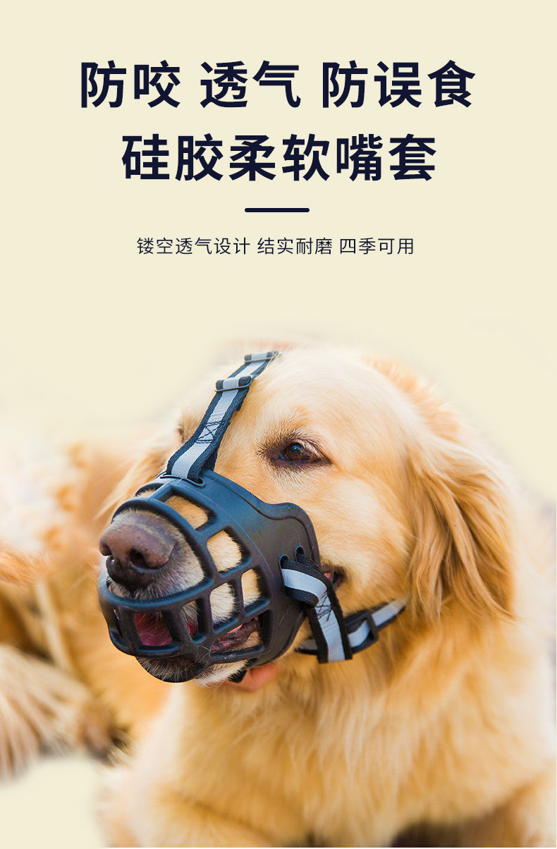 新款狗狗嘴套 透气防叫咬 防乱吃 可喝水 狗口罩 柔软 硅胶材质 多个尺寸