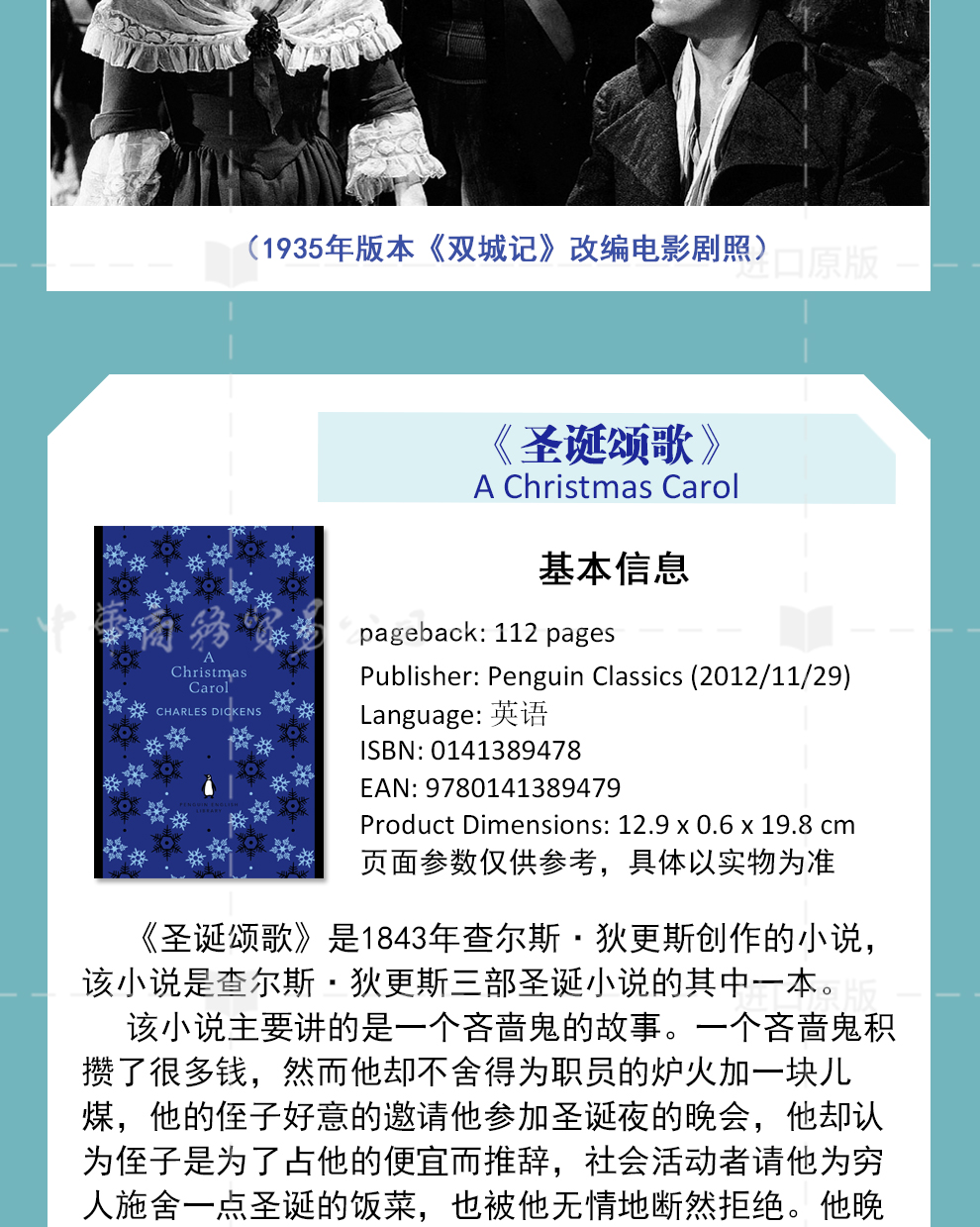 预售 【中商原版】狄更斯经典系列III 双城记 圣诞颂歌 英文原版 Penguin企鹅英语图书馆 英语阅读小说