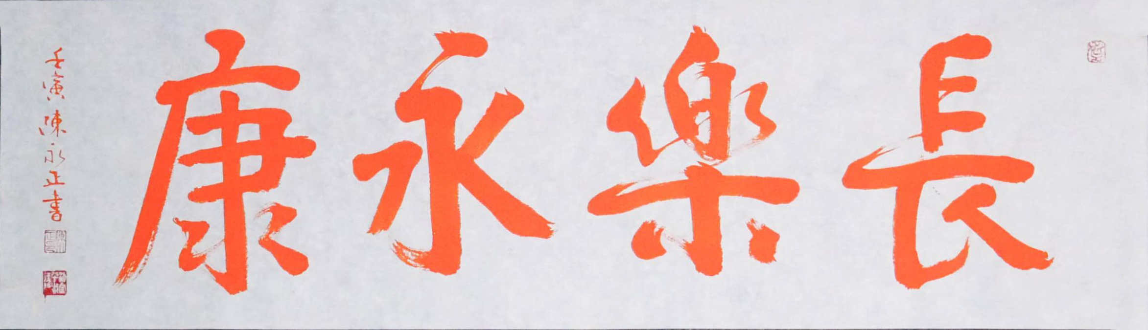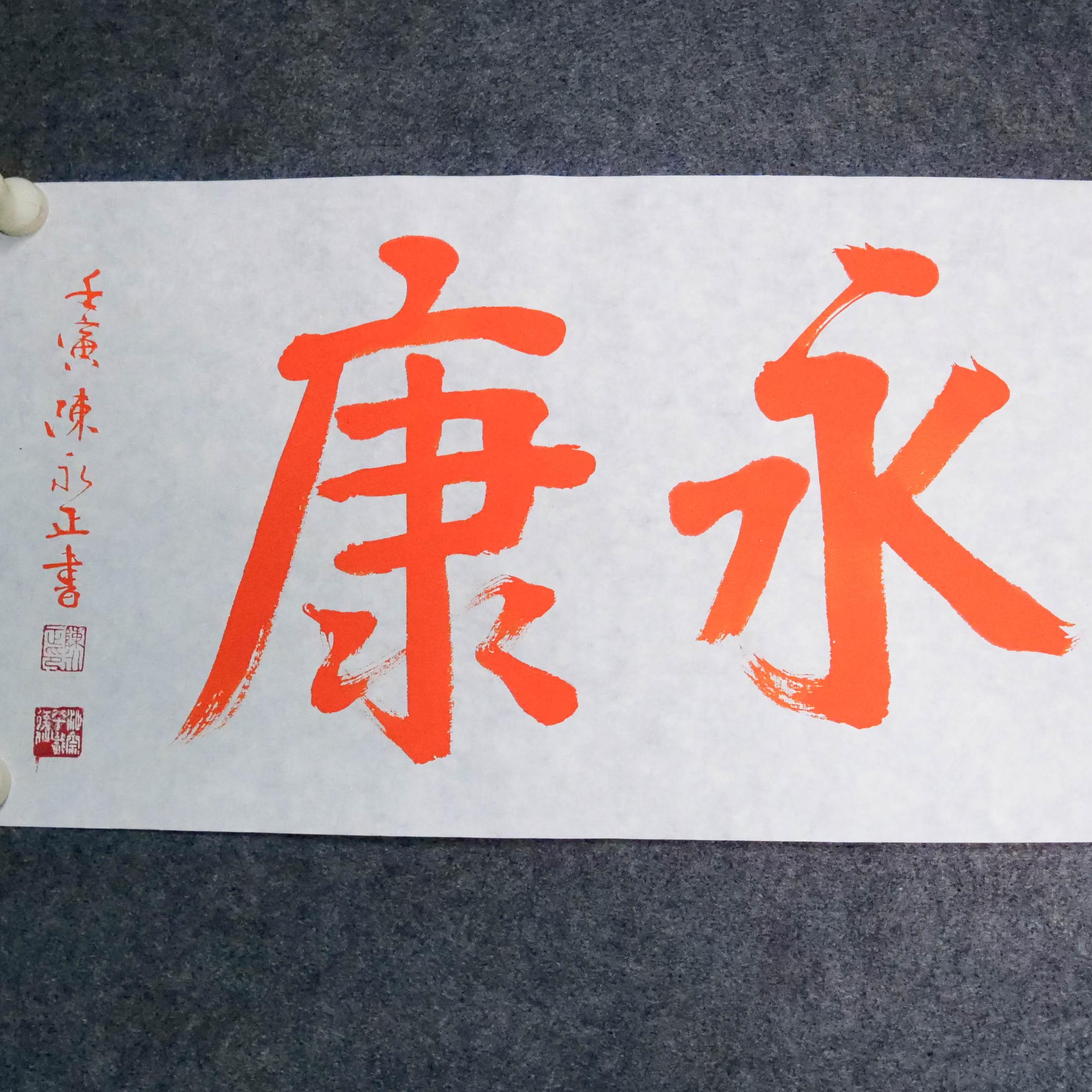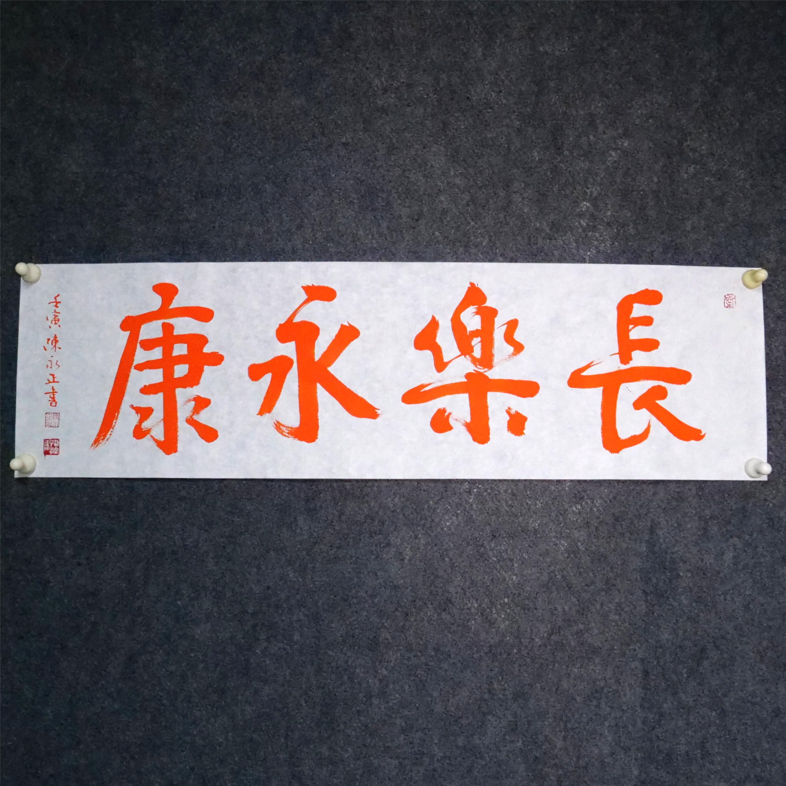 陈永正《长乐永康》书法原作28CM*96CM 手写宣纸朱砂吉语