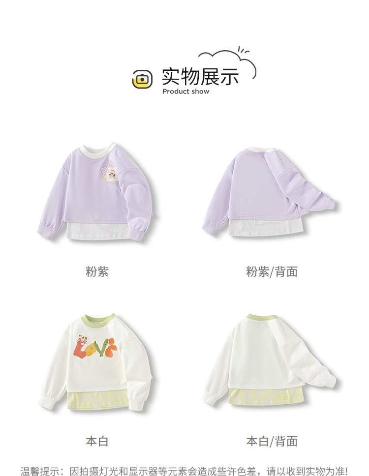 巴拉巴拉童装女童卫衣假两件上衣2025春新款休闲装