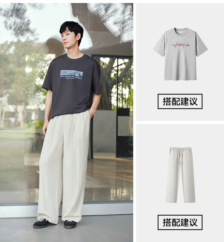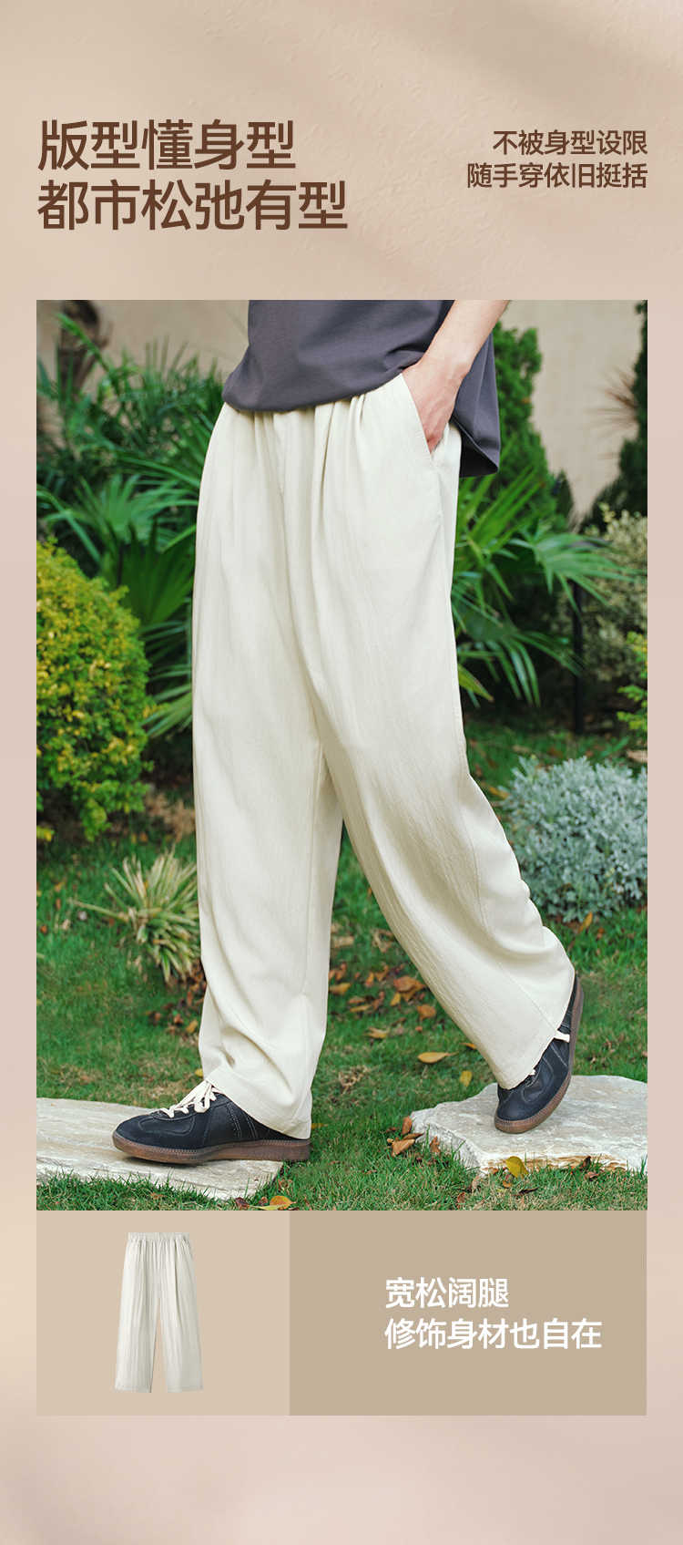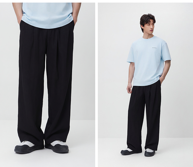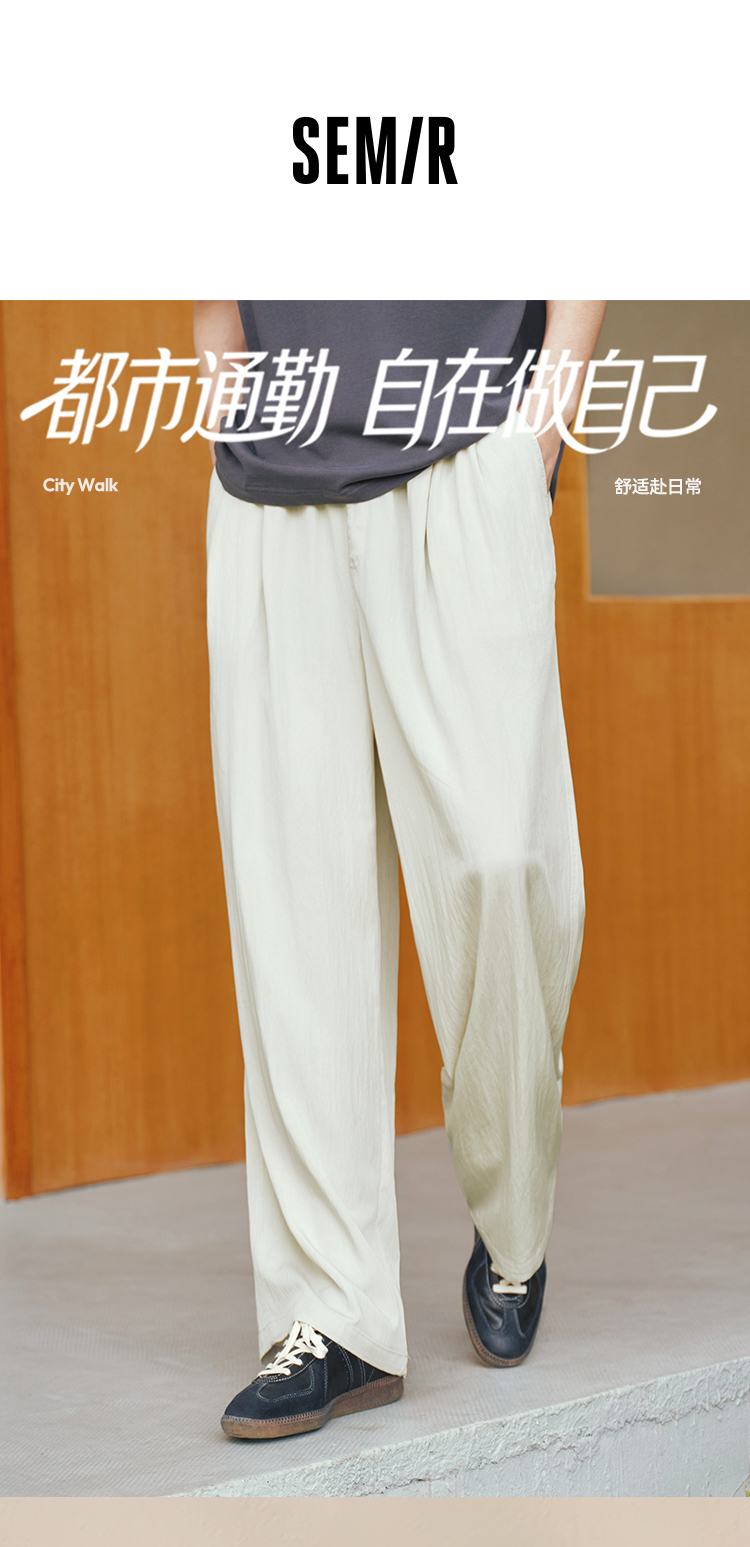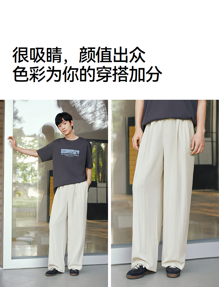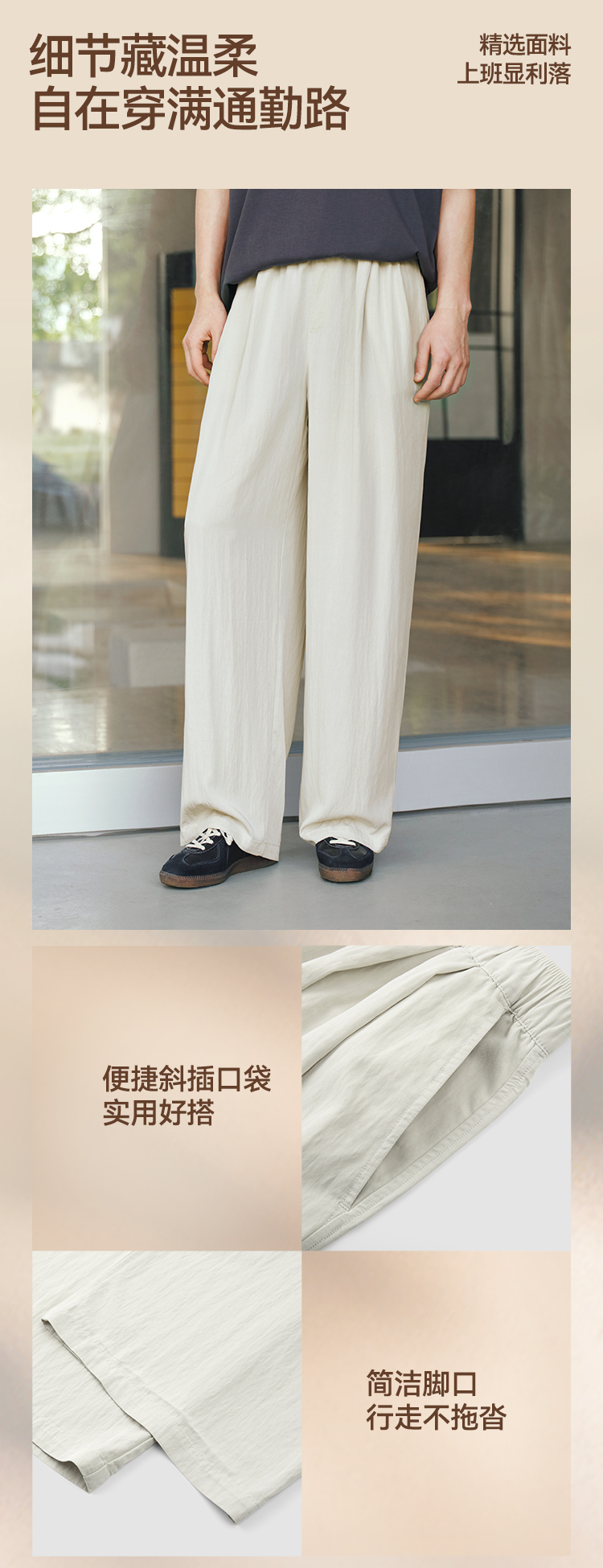 森马休闲裤男夏季舒适垂感阔腿裤子2026新款微皱A字显高显瘦长裤