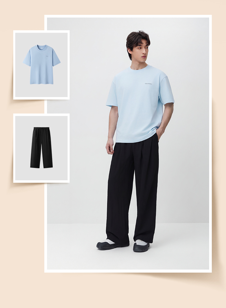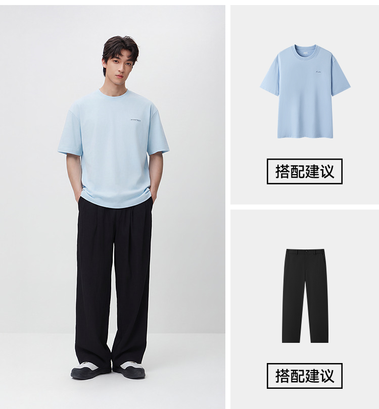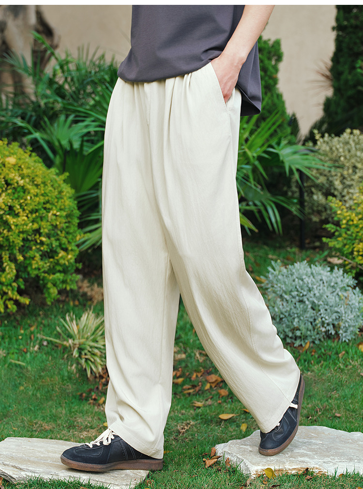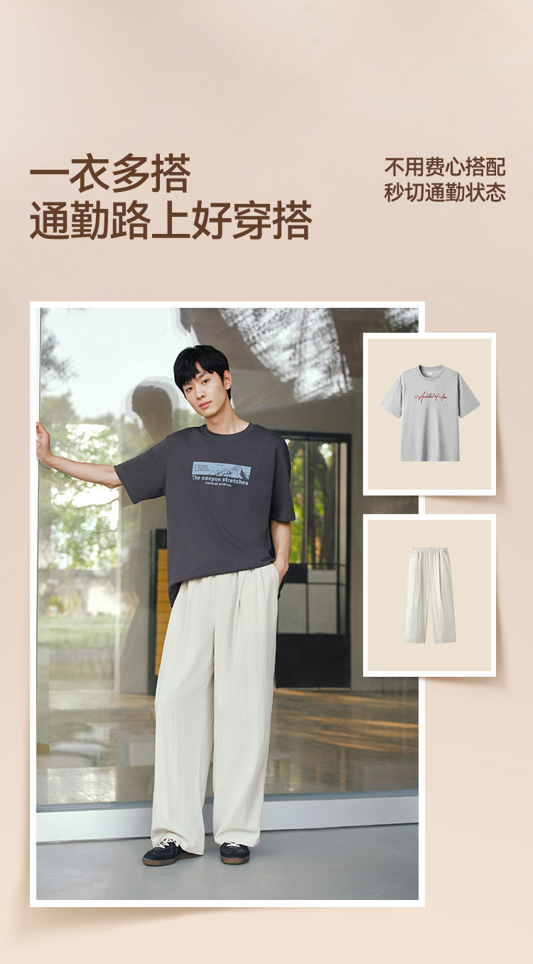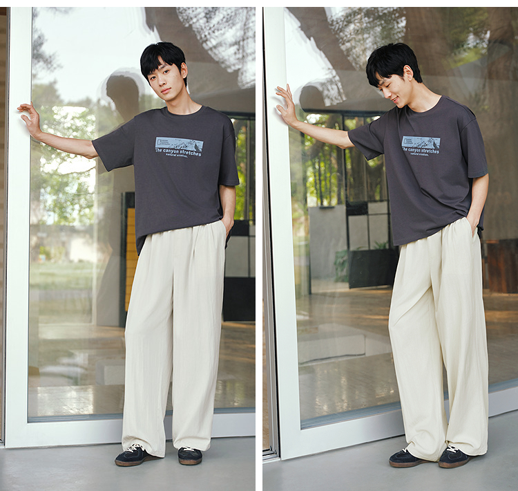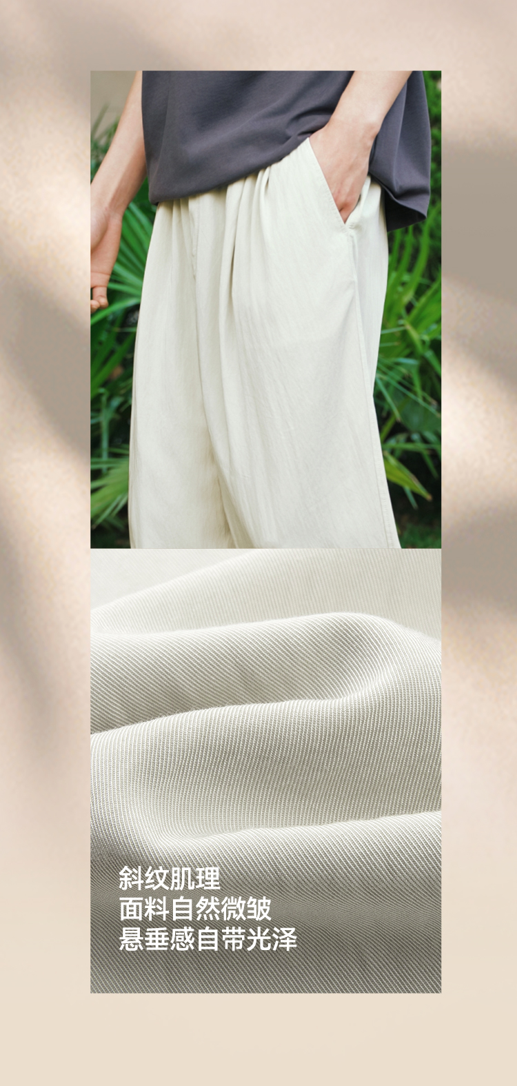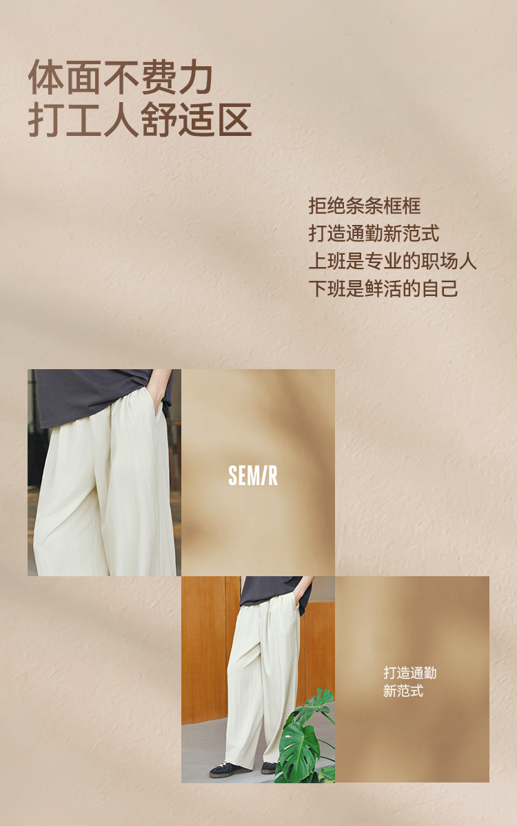森马休闲裤男夏季舒适垂感阔腿裤子2026新款微皱A字显高显瘦长裤