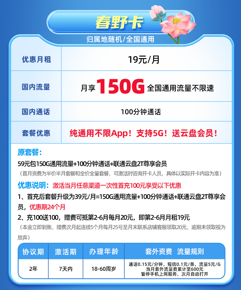 【长期流量·不限APP】支持5G高速!全国流量可用!仅发浙江!春野卡 商品图0