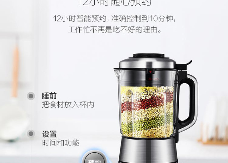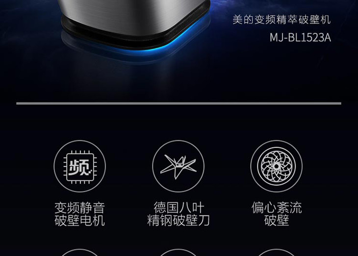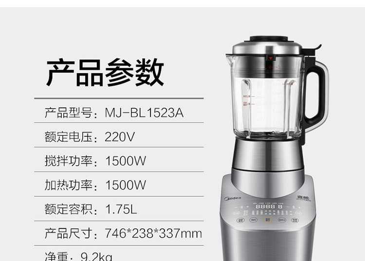 美的(508264) BL1523A 变频破壁机料理机破壁料理机 3-5人 料理功能加热 主杯容量1.75 自动清洗;预约功能