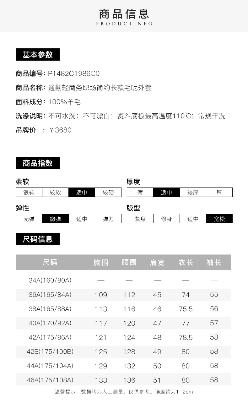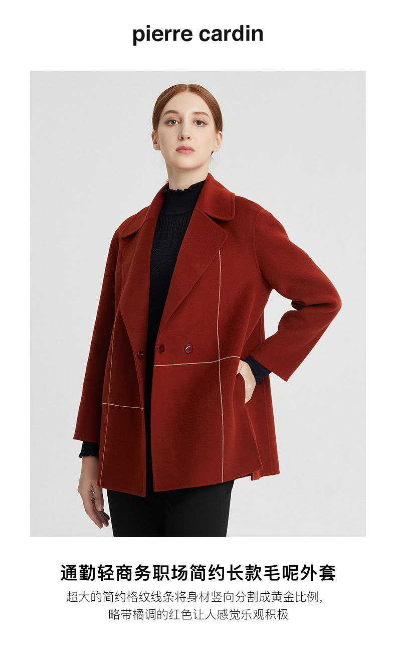 皮尔卡丹女装经典气质高级感通勤干练纯羊毛大衣P1482C1986C0