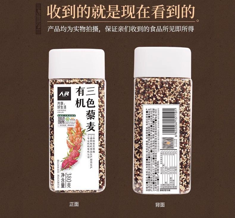 人民 瓶装有机三色藜麦380g