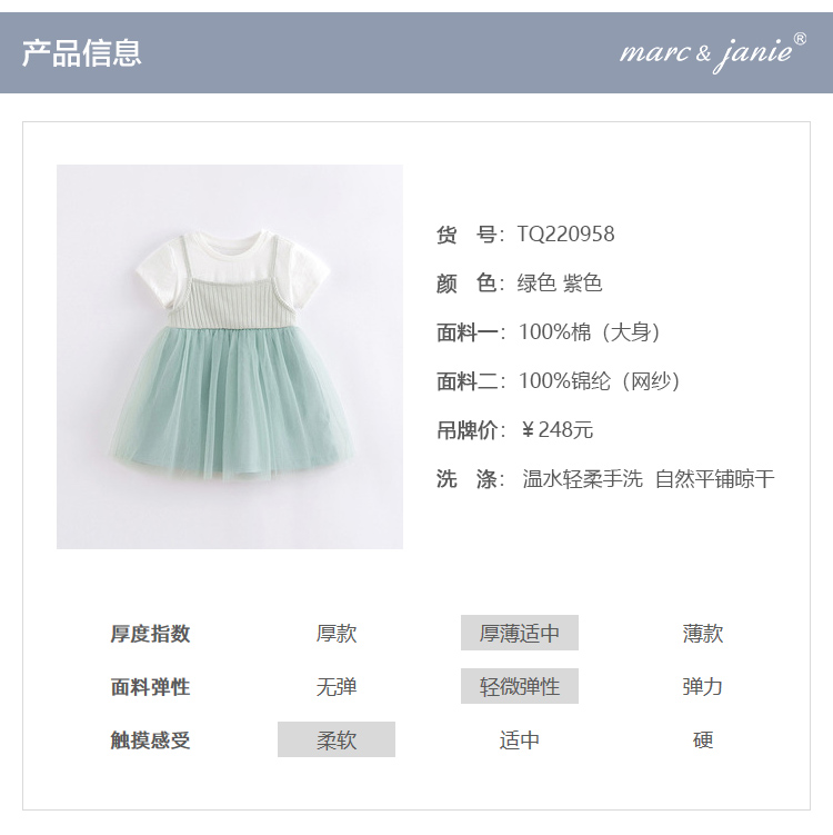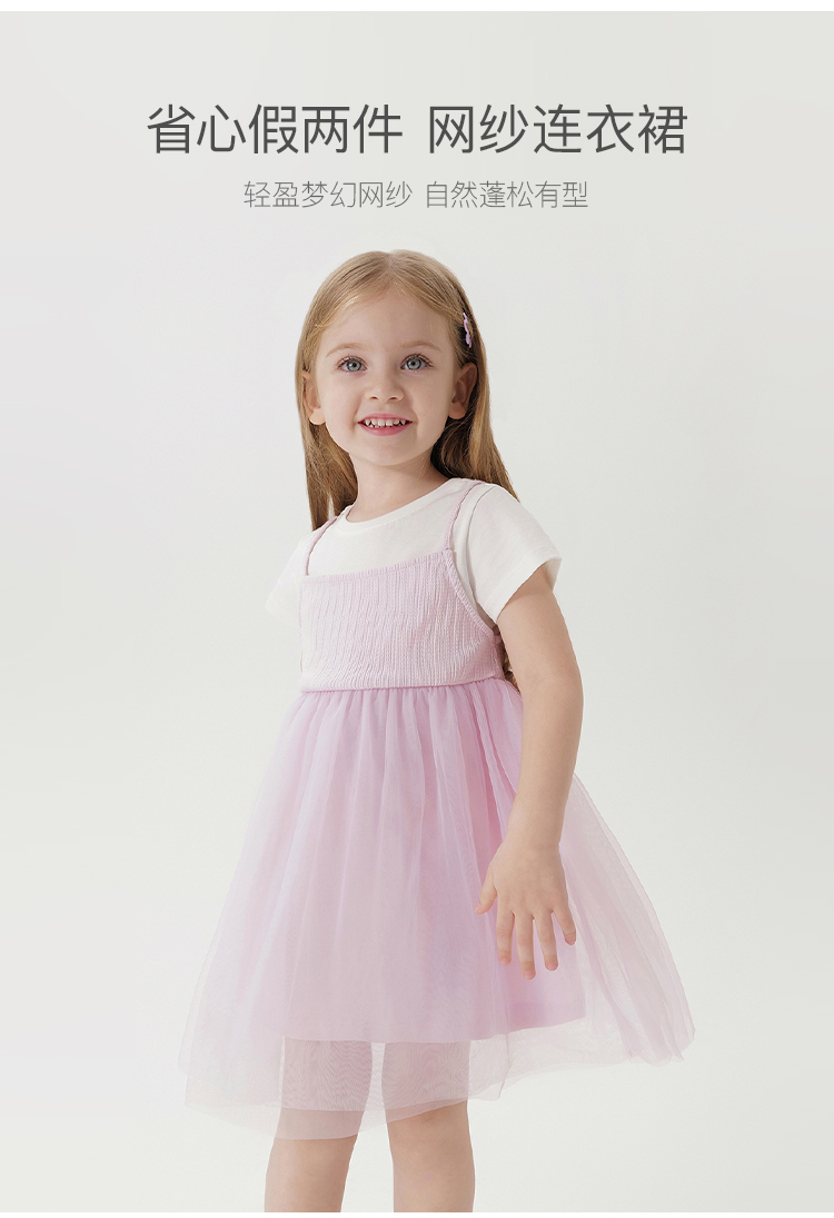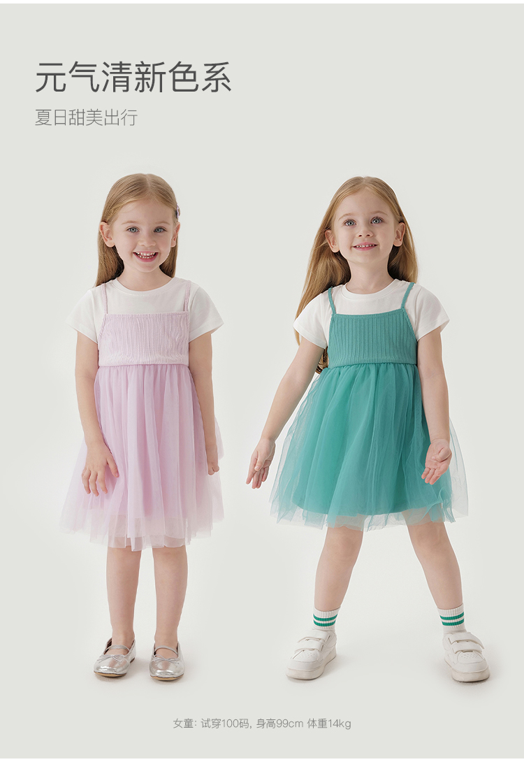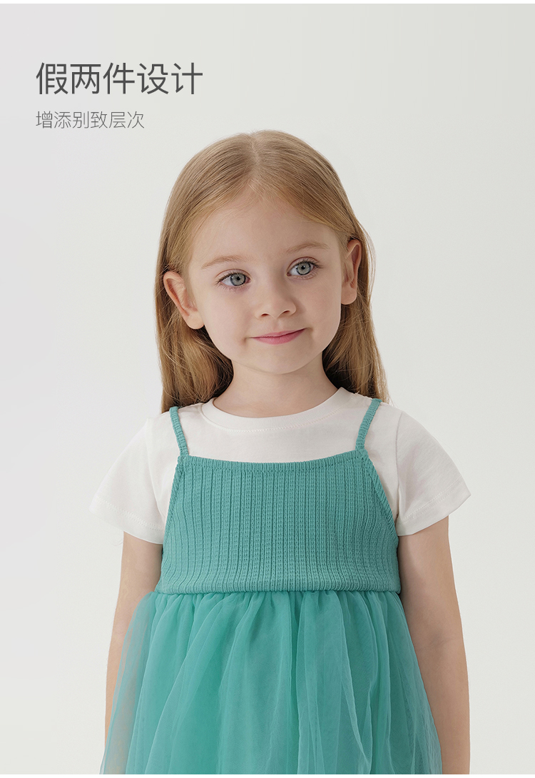 【假两件】马克珍妮夏装新品 女童短袖网纱连衣裙 儿童裙子230907