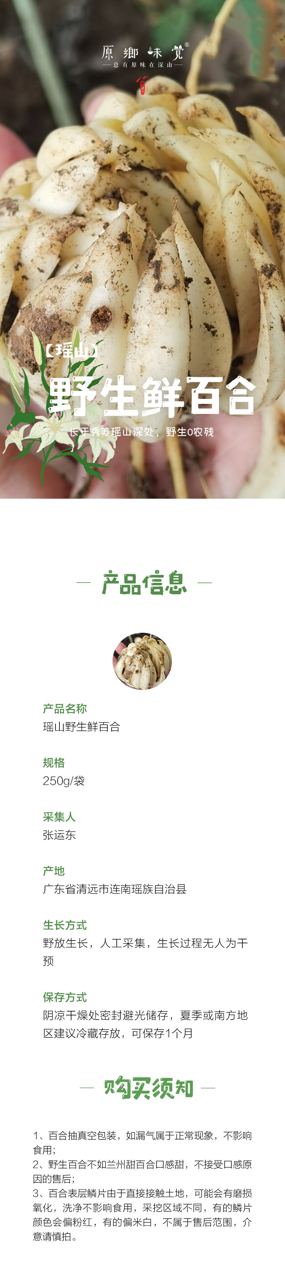 瑶山野生鲜百合(基地直发-京东/中通快递 )| 1斤/份,来自广东清远,生产者:张运东【合作生产,公平贸易】