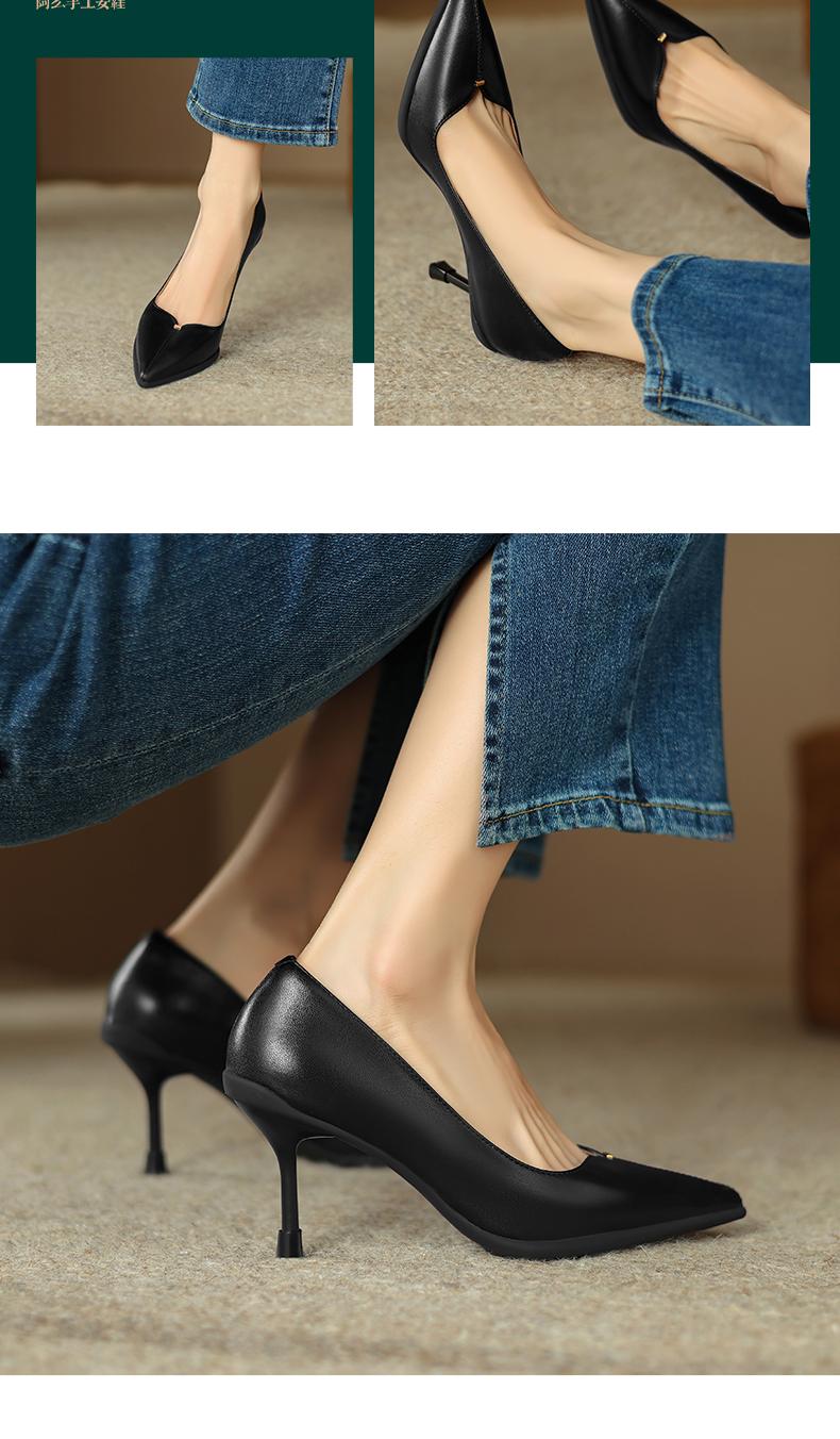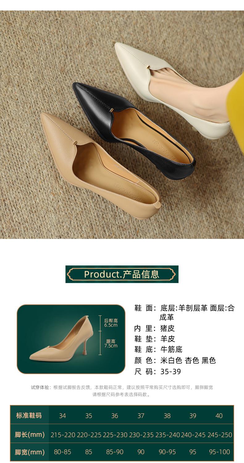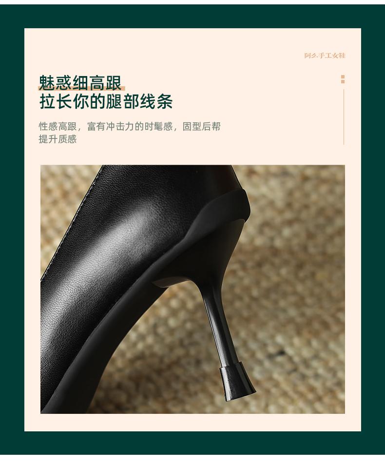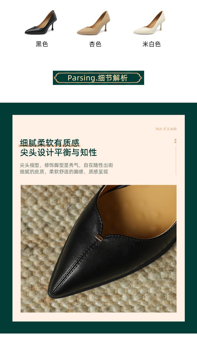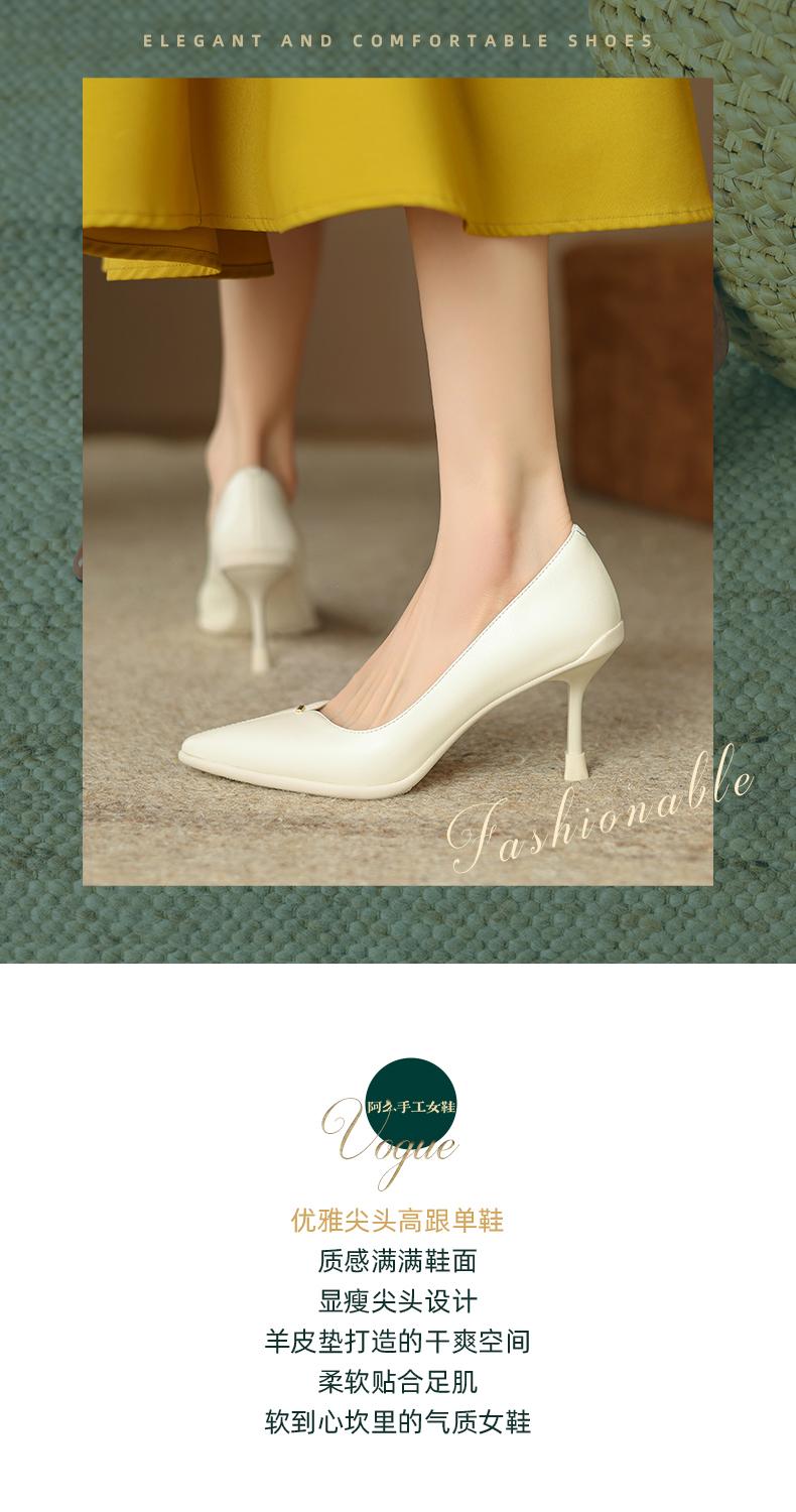 阿么手工女鞋春季新款真皮细跟7.5CM高跟鞋超软浅口舒适百搭单鞋