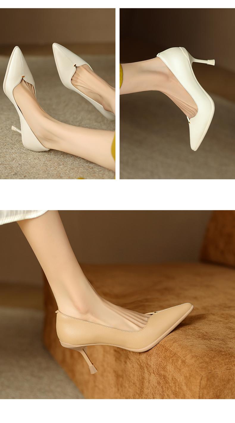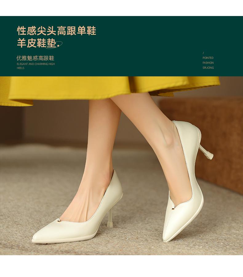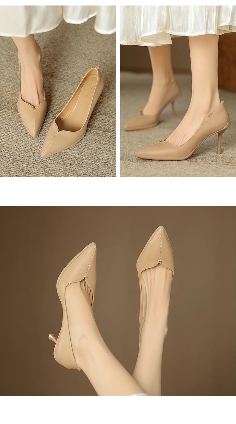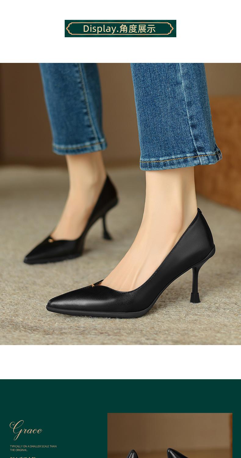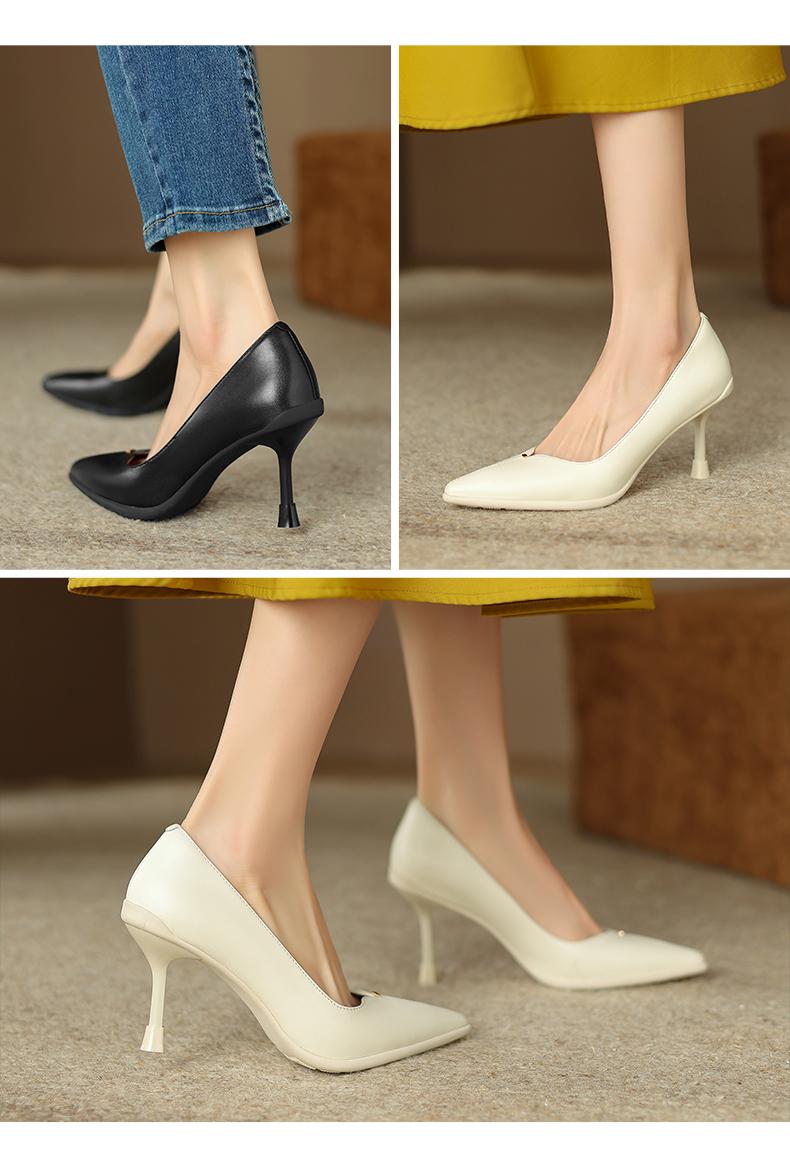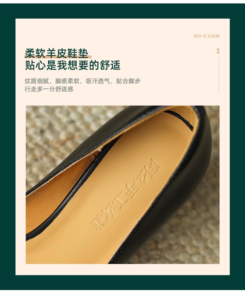 阿么手工女鞋春季新款真皮细跟7.5CM高跟鞋超软浅口舒适百搭单鞋