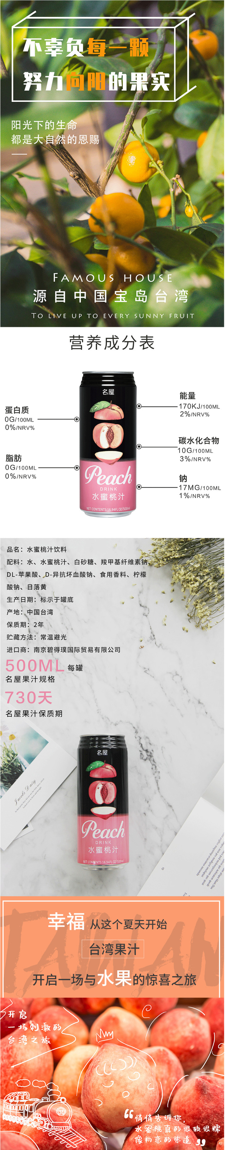 名屋水蜜桃汁 500ml 罐装进口休闲饮料品