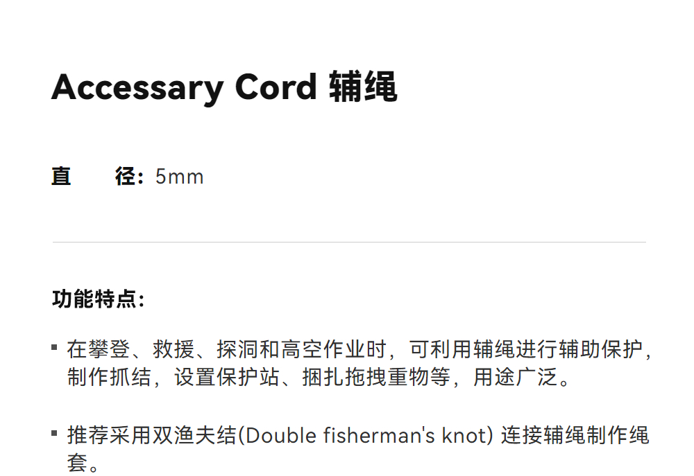 KAILAS凯乐石 户外运动 Accessary Cord 辅绳 5mm*50m ER301A