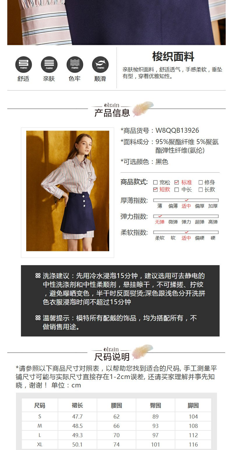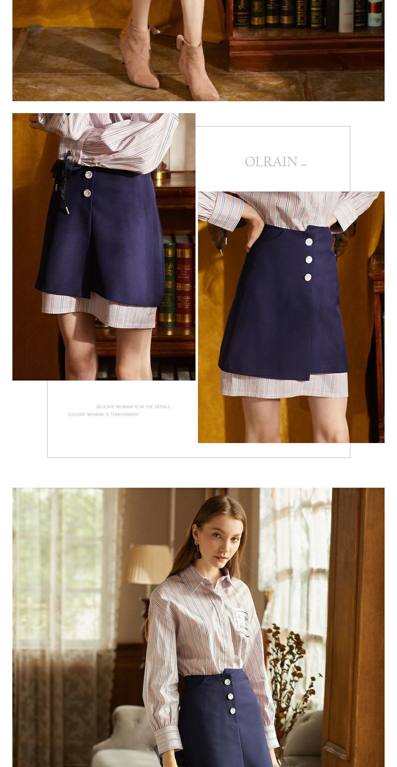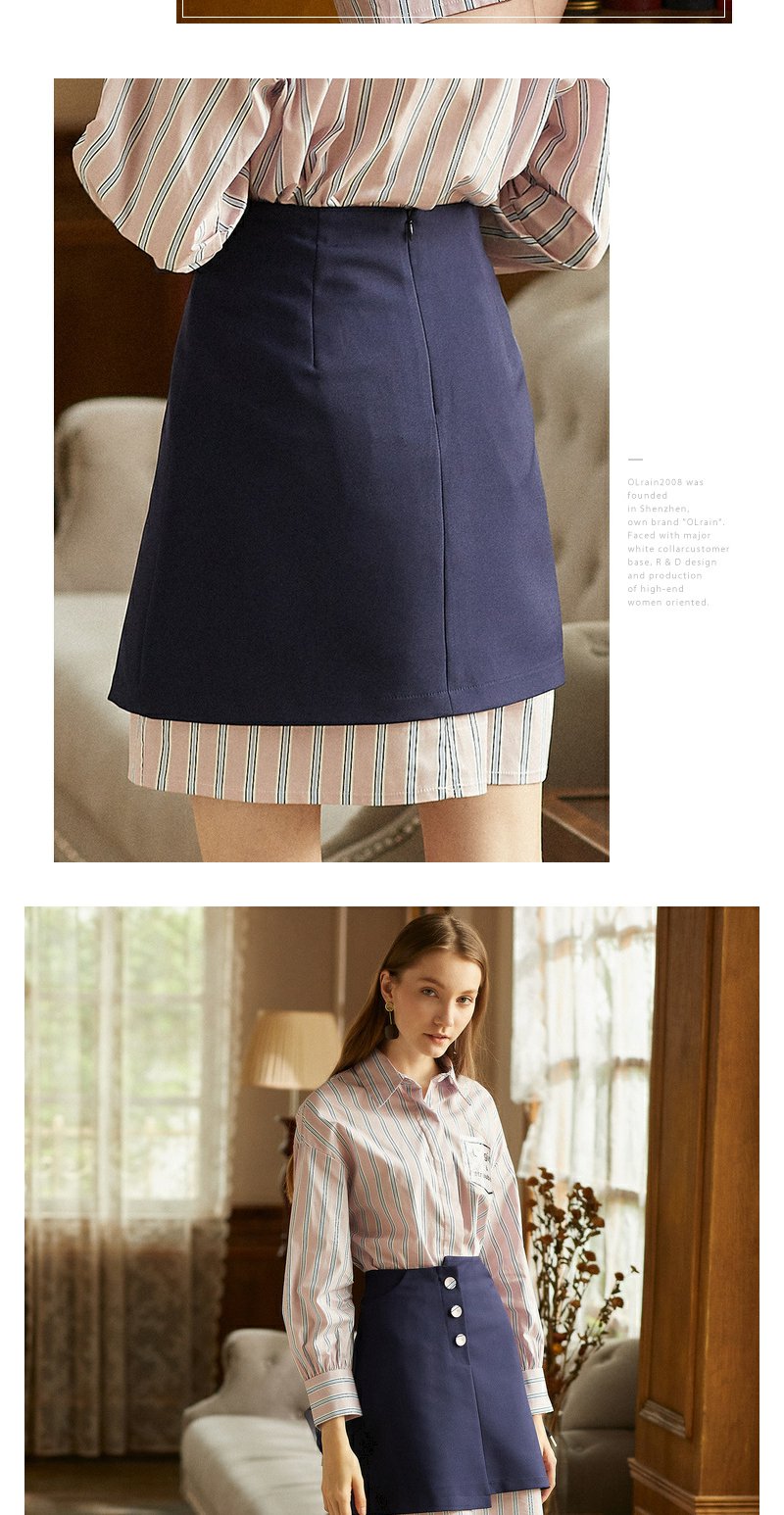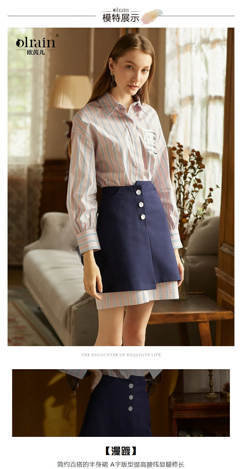 欧芮儿 新品收腰百搭ol风a字裙女不规则半身裙女短裙