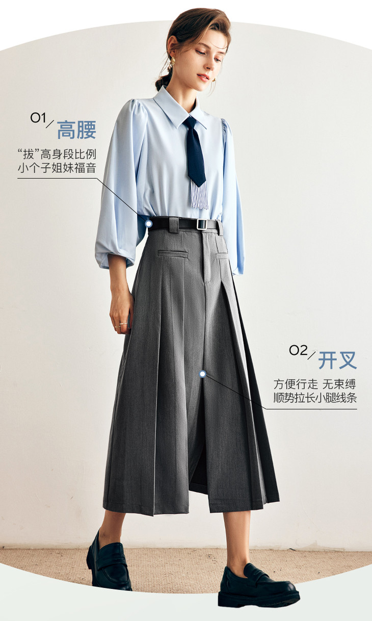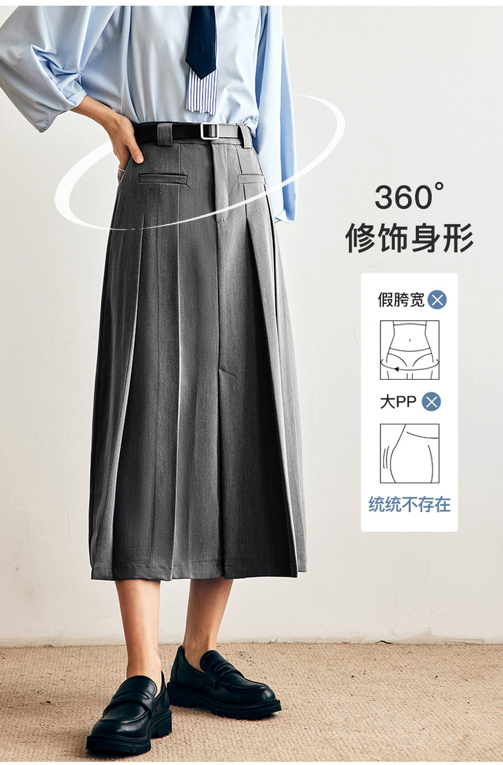 欧芮儿法式灰色百褶裙半身裙女春2025新款小个子高腰A字西装长裙