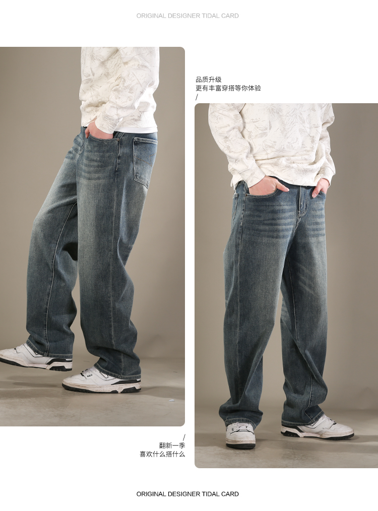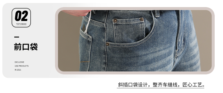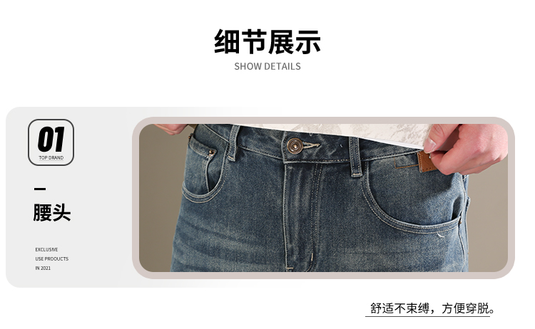 DRONKOO 2026 正常腰左袋棕皮标绣线四面弹中厚牛仔长裤