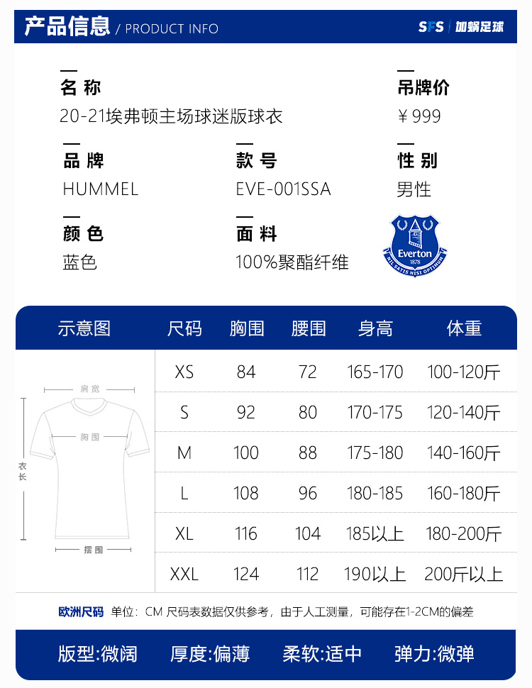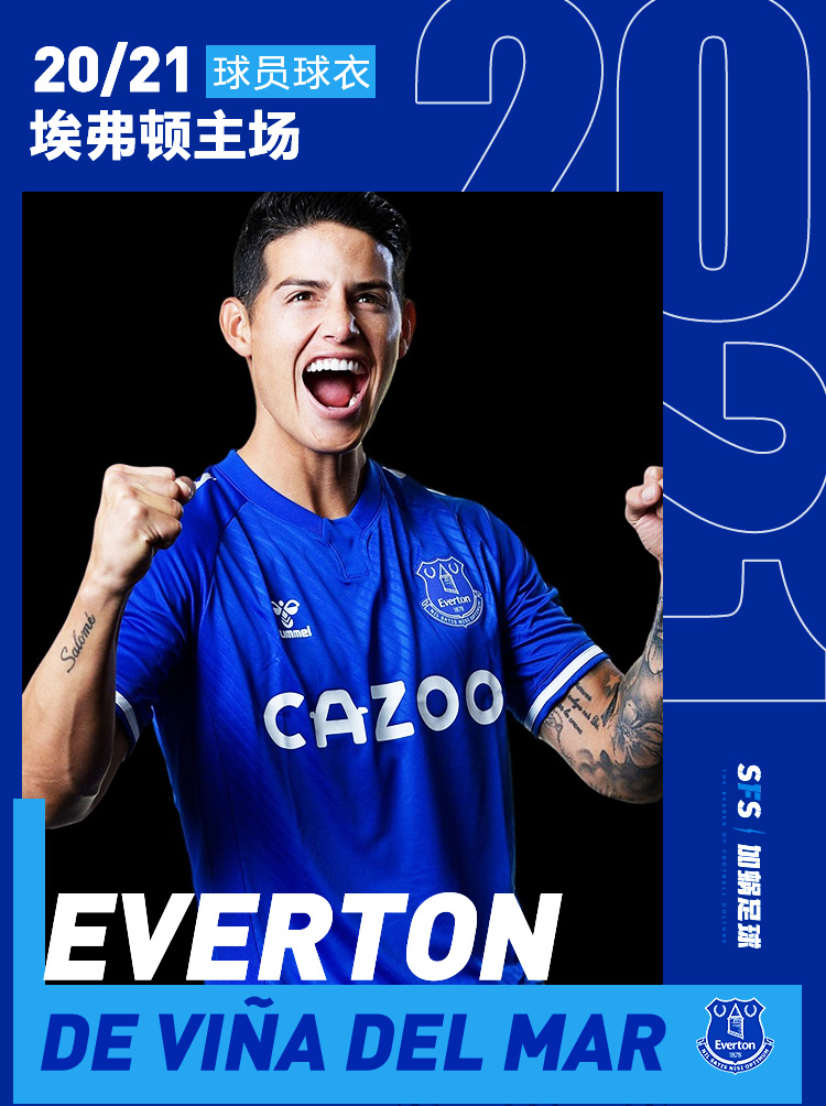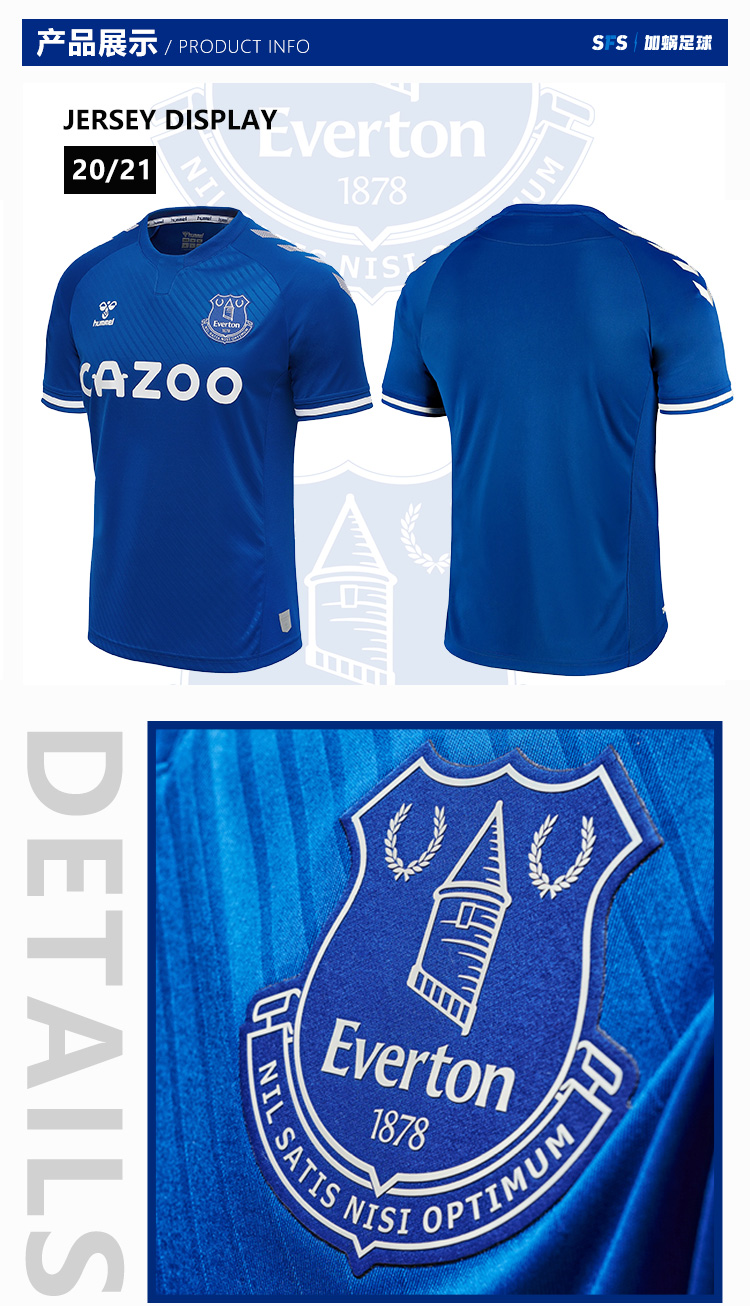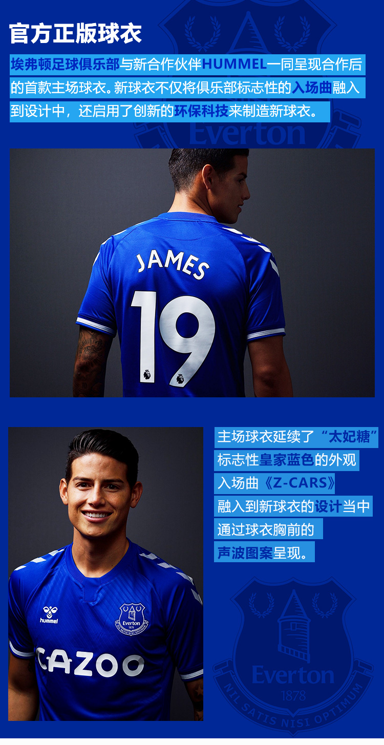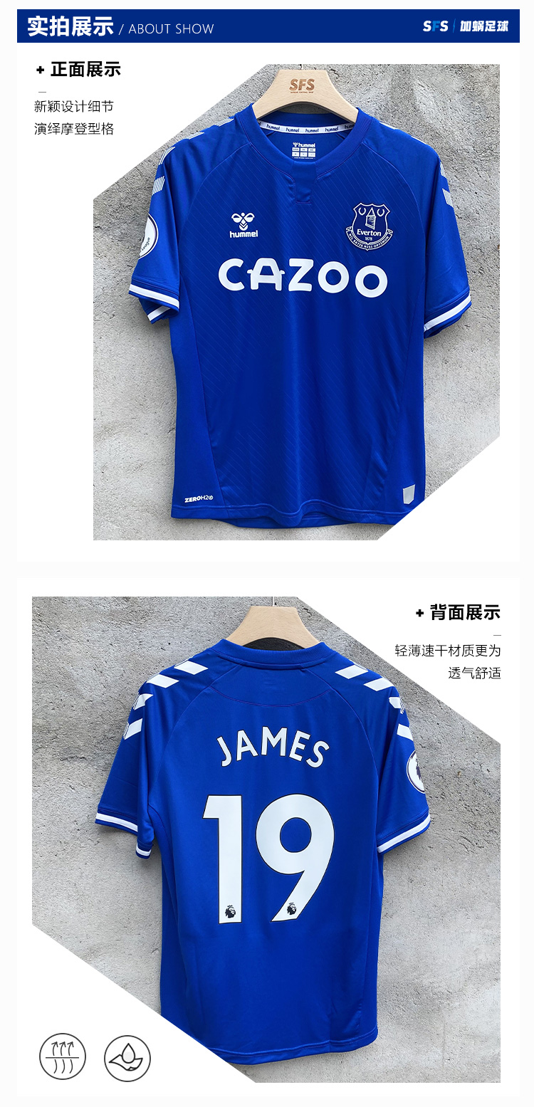 SFS Hummel正版 20-21埃弗顿球员比赛主场球衣 短袖足球服