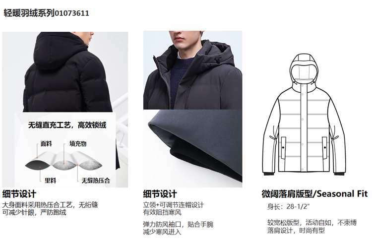 佐丹奴男装商场同款羽绒外套 01073611