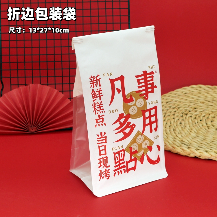 13*27cm 凡事多用点心 折边封口袋 白色内部覆膜 面包酥饼甜点包装袋