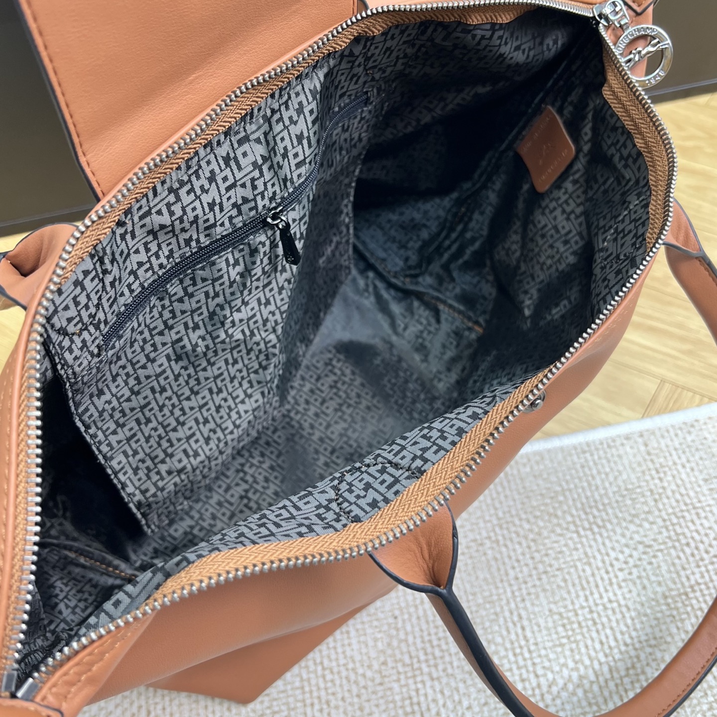 LePliageXtra系列颇具现代感的低调造型,给都市日常生活注入新鲜活力,包身经进口牛皮工艺处理,呈现柔滑质感,可以放电脑、经久耐用。
