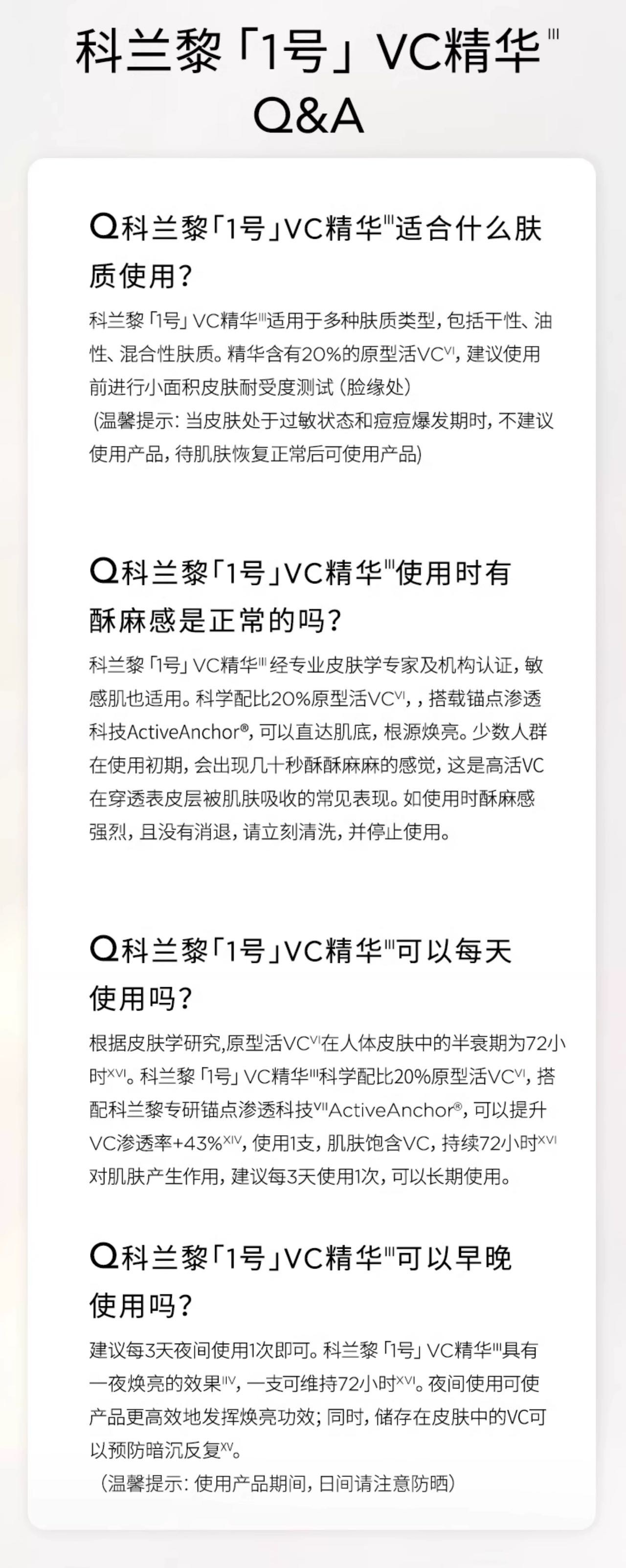 赵丽颖同款 科兰黎1号VC次抛精华焕亮抗皱抗氧