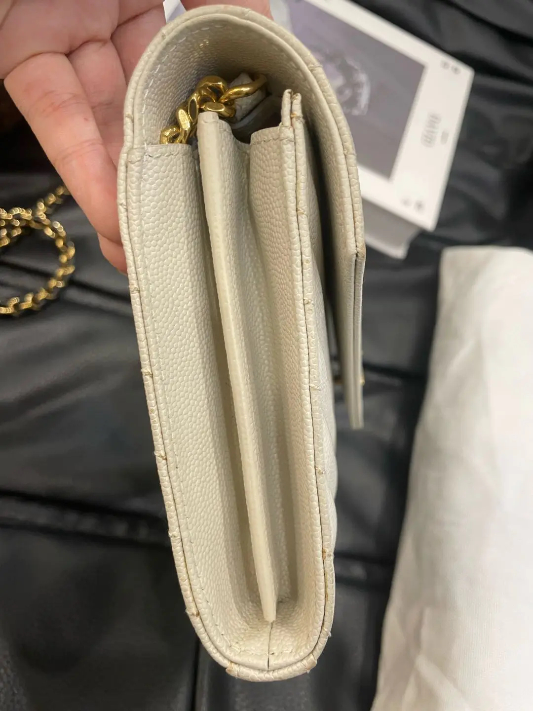 【商品详情】正品二手 YSL 白金 鱼子酱牛皮 大WOC 信封包卡🤩97新 22×14 配件:肩带 说明书 防尘袋。夏日穿搭首选。