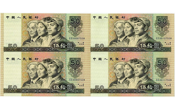 【藏品名称】第四套人民币90版50元四连体