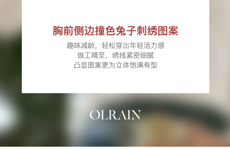 - “精致”是欧芮儿olrain品牌文化的核心,欧芮儿认为,精致的女人,不但要外在动人,更要内在迷人,内外兼修,有魅力、有气质、有内涵,自信而不自傲,优雅而不矫揉,自有万种风情而不轻浮,更不故作矜持。